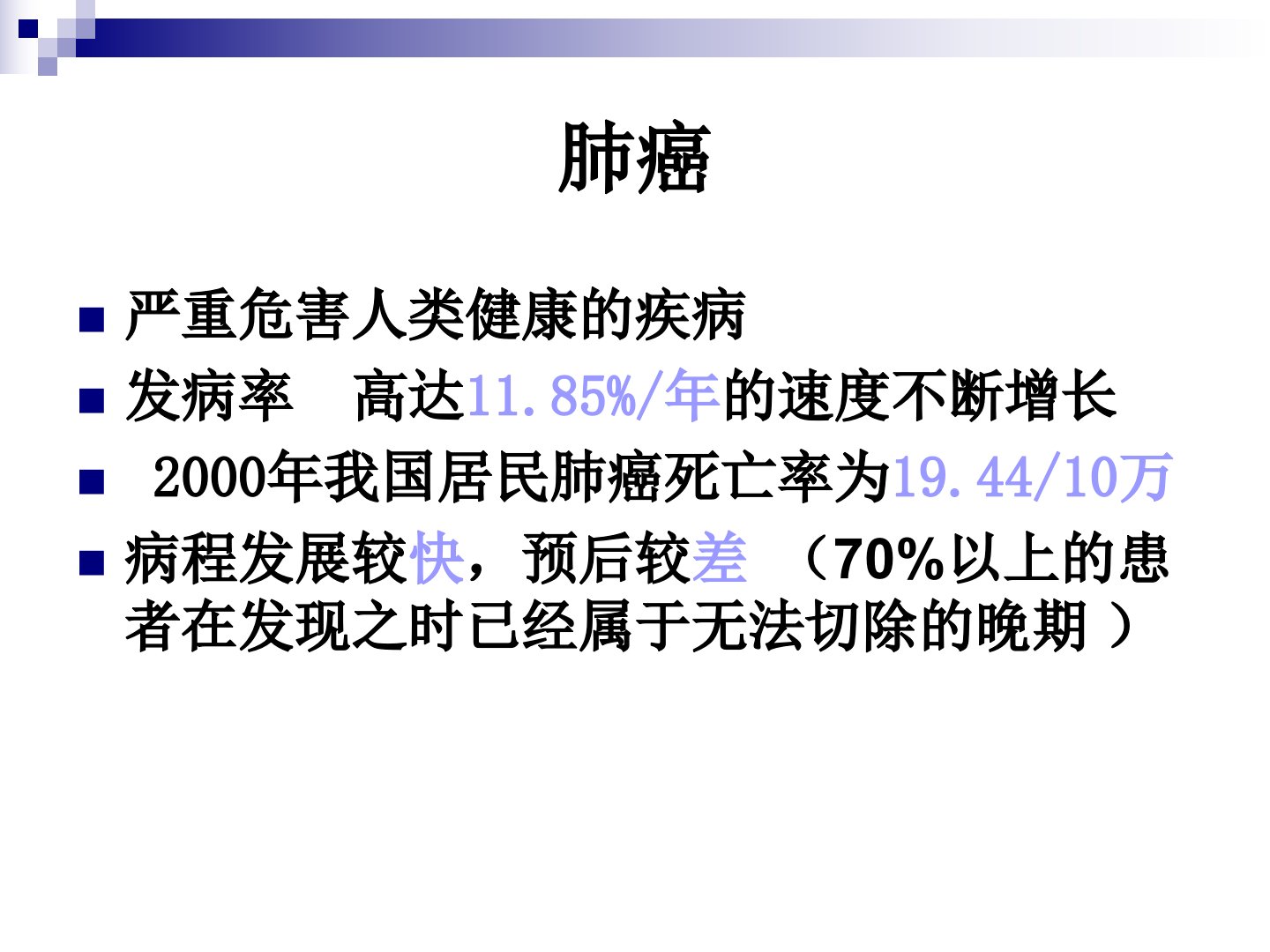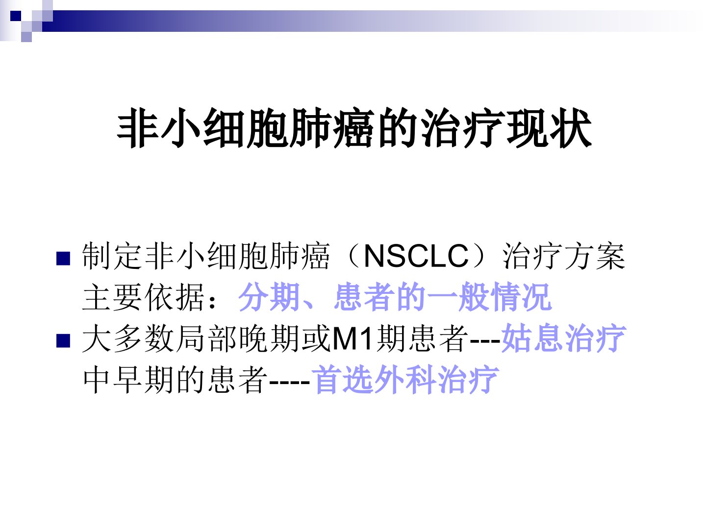 肺癌外科治疗中的系统性纵隔淋巴结清扫肺癌严重危害人类健康的疾病发病率高达11.85%/年的速度不断增长2000年我国居民肺癌死亡率为19.44/10万病程发展较快,预后较差(70%以上的患者在发现之时已经属于无法切除的晚期)非小细胞肺癌的治疗现状制定非小细胞肺癌(NSCLC)治疗方案主要依据:分期、患者的一般情况大多数局部晚期或M1期患者---姑息治疗中早期的患者----首选外科治疗中早期肺癌患者的治疗首选外科治疗5年生存率23%(60年代)/54%(90年代)1.精确评估肿瘤范围,提高肿瘤手术的完整切除率2.麻醉监护技术提高,围手术期死亡率显著下降治疗失败主要是术后复发和转移术后辅助性化疗或...