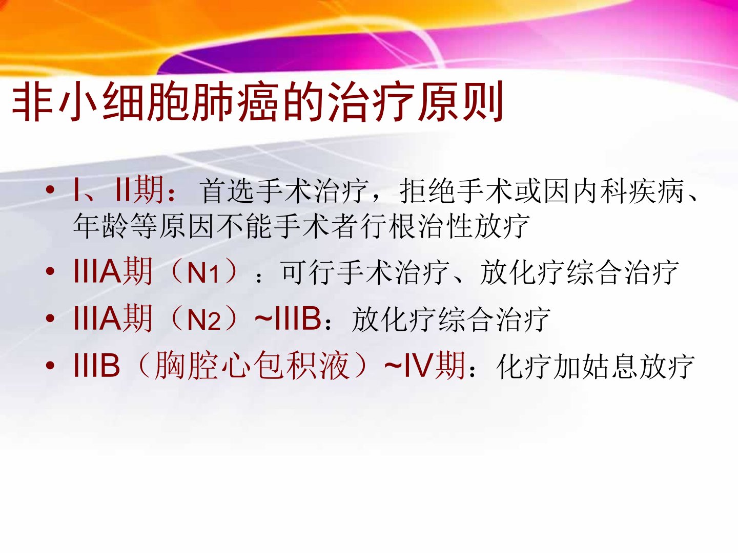 非小细胞肺癌的放射治疗需根据患者机体状况、肿瘤临床分期进行综合治疗。治疗原则方面I、II期首选手术不能手术者行根治性放疗;IIIA期可行手术或放化疗综合治疗;IIIB期及IV期以放化疗和姑息放疗为主。放疗适应症包括术前、术后、根治性及姑息性放疗。早期非小细胞肺癌放疗适用于高龄、有严重内科合并症或拒绝手术者5年生存率2530。放疗剂量建议6570Gy不低于60Gy。淋巴结引流区是否预防性照射存在争议需根据具体情况综合分析。局部晚期非小细胞肺癌以同期放化疗为标准治疗模式。术前放疗可提高手术切除率但多数已被诱导化疗取代。术后放疗适用于切缘阳性等不良预后因素者。胸部放射性损伤包括肺、食管、脊髓等损伤与放射及其他因素有关。一例74岁右上肺周围型鳞状细胞癌cT1N2M0a期患者因年龄大、有高血压且拒绝手术故采用根治性放疗放疗计划需精确定义靶区确保剂量均匀度并限制正常器官受量。