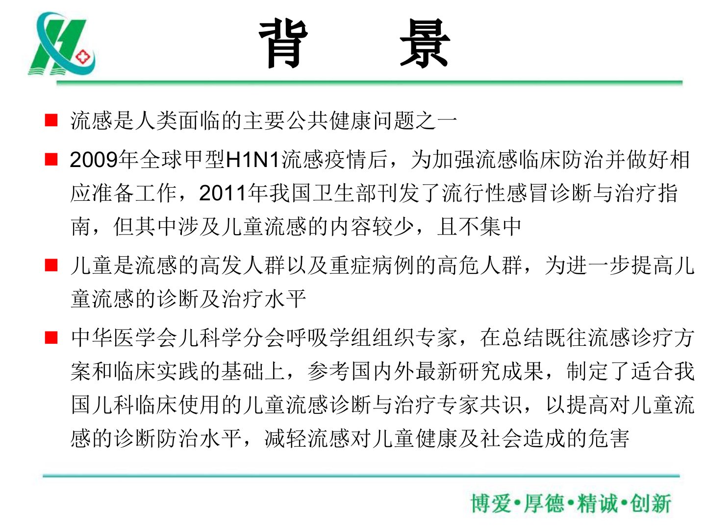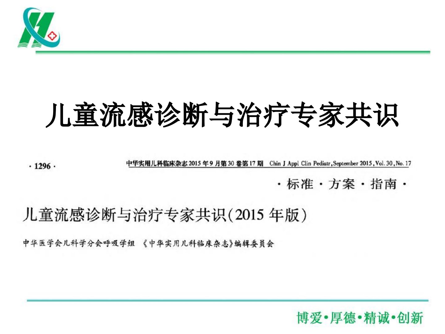 儿童流感诊断与治疗专家共识背景流感是人类面临的主要公共健康问题之一2009年全球甲型H1N1流感疫情后,为加强流感临床防治并做好相应准备工作,2011年我国卫生部刊发了流行性感冒诊断与治疗指南,但其中涉及儿童流感的内容较少,且不集中儿童是流感的高发人群以及重症病例的高危人群,为进一步提高儿童流感的诊断及治疗水平中华医学会儿科学分会呼吸学组组织专家,在总结既往流感诊疗方案和临床实践的基础上,参考国内外最新研究成果,制定了适合我国儿科临床使用的儿童流感诊断与治疗专家共识,以提高对儿童流感的诊断防治水平,减轻流感对儿童健康及社会造成的危害病原学及发病机制流行病学临床表现及诊断并发症治疗预防背景病原学...