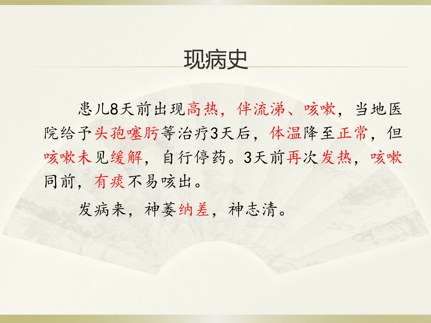 病例讨论中的患儿为1岁9个月女童反复发热伴咳嗽8天再发3天。8天前出现高热伴流涕、咳嗽当地医院给予头孢噻肟等治疗3天后体温降至正常但咳嗽未缓解自行停药。3天前再次发热咳嗽有痰不易咳出。查体示体温39呼吸40次分脉搏150次分神清但精神差面色苍黄咽红气促可见吸气三凹征右下肺叩诊浊音呼吸音低左侧闻湿啰音肝肋下4cm。辅助检查示白细胞、中性粒细胞比例、CRP均升高初步诊断为重度支气管肺炎细菌感染(首先考虑肺炎链球菌)右侧胸腔积液?营养不良轻度贫血败血症。治疗包括对症支持治疗、抗病原微生物治疗、糖皮质激素治疗及胸腔积液处理。抗菌治疗根据肺炎链球菌敏感性选用不同药物疗程及给药途径需根据病情调整。糖皮质激素用于喘憋明显、重症肺炎等情况需在有效抗菌药物使用前提下加用。胸腔积液根据量决定是否引流。对于坏死性肺炎治疗包括抗生素、糖皮质激素、静脉注射丙种球蛋白、纤维支气管镜术、胸腔积液处理及外科治疗。