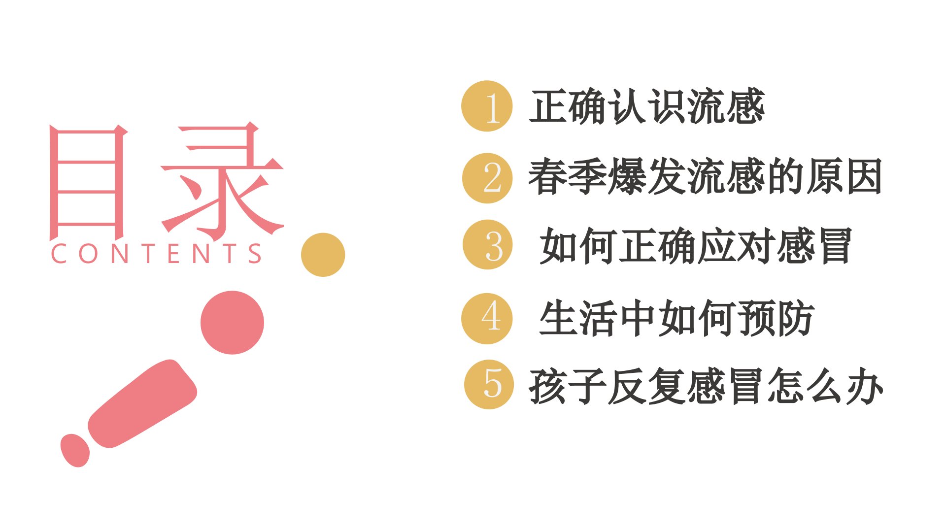 流行性感冒简称流感由流行性感冒病毒引起多在春季和冬季爆发经空气飞沫传播起病急骤全身中毒症状明显年老、体弱、婴幼儿易并发肺炎。儿童在春季易感冒与气温变化、免疫力低有关。正确应对感冒不应盲目吃消炎药、捂汗或一发烧就吃退烧药而应冷敷、多喝水。对于不满三个月的婴儿出现体温过高、拒绝喝水、排尿少、口腔干燥等症状时要及时就医。孩子反复感冒临床上02岁儿童一年之内发生上呼吸道感染超7次36岁超6次即称为反复呼吸道感染多因脾虚肺热、食积必须彻底清除才能防止感冒反复发作。儿童感冒发热饮食减少感冒好后家长给孩子大量补充营养易形成食积导致食复这是好多孩子反复感冒的原因。应对食复推荐使用复方丁香开胃贴可健脾开胃、燥湿和中、调气导滞。预防治疗儿童反复呼吸道感染要注重健脾开胃也可进行简单的推拿保健。