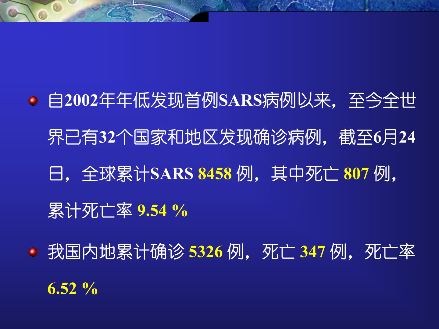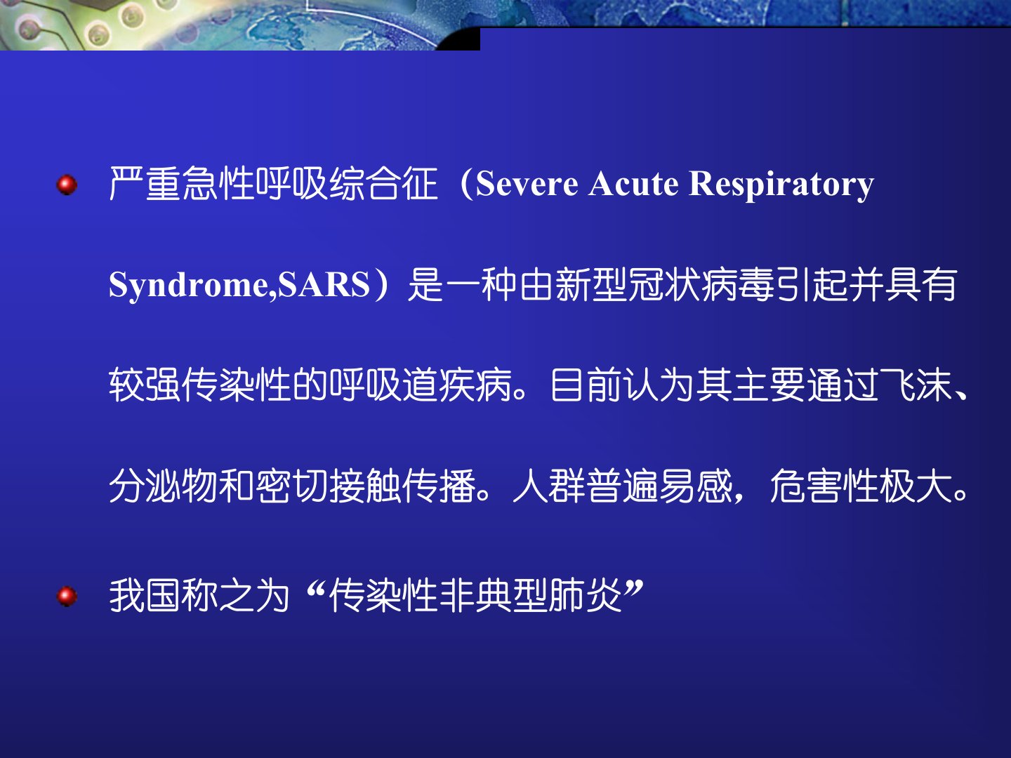 SARS影像学诊断和鉴别诊断严重急性呼吸综合征(SevereAcuteRespiratorySyndrome,SARS)是一种由新型冠状病毒引起并具有较强传染性的呼吸道疾病。目前认为其主要通过飞沫、分泌物和密切接触传播。人群普遍易感,危害性极大。我国称之为“传染性非典型肺炎”自2002年年低发现首例SARS病例以来,至今全世界已有32个国家和地区发现确诊病例,截至6月24日,全球累计SARS8458例,其中死亡807例,累计死亡率9.54%我国内地累计确诊5326例,死亡347例,死亡率6.52%综合目前的临床、流行病学资料以及实验室检查结果,基本证实SARS病原体为一种新的冠状病毒(SARS...