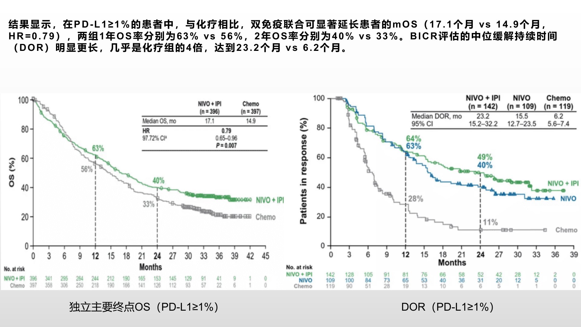 2019ESMO肺癌免疫治疗领域有诸多新进展:1CheckMate227:双免疫联合(NivolumabIpilimumab)开启晚期非小细胞肺癌(NSCLC)一线治疗“去化疗”时代。与化疗相比无论PDL1表达水平如何双免疫联合均显著延长患者总生存期(mOS)且缓解更持久但治疗相关不良事件更多。2IMpower110:Atezolizumab单药一线治疗改善PDL1高表达晚期NSCLC患者的OS安全性良好能否超越Pembrolizumab成为最佳选择有待观察。3KEYNOTE407:Pembrolizumab联合化疗显著延长转移性肺鳞癌患者的PFS2提示免疫治疗越早使用越好。4IMpower133:Atezo联合化疗显著改善广泛期小细胞肺癌(SCLC)一线治疗的OS安全性良好。5KEYNOTE010、042:tTMB与Pembro单药治疗疗效相关高tTMB患者预后更好。6KEYNOTE021、189和407:tTMB与Pembro联合化疗疗效无关联合治疗在晚期NSCLC中均显示出生存获益。