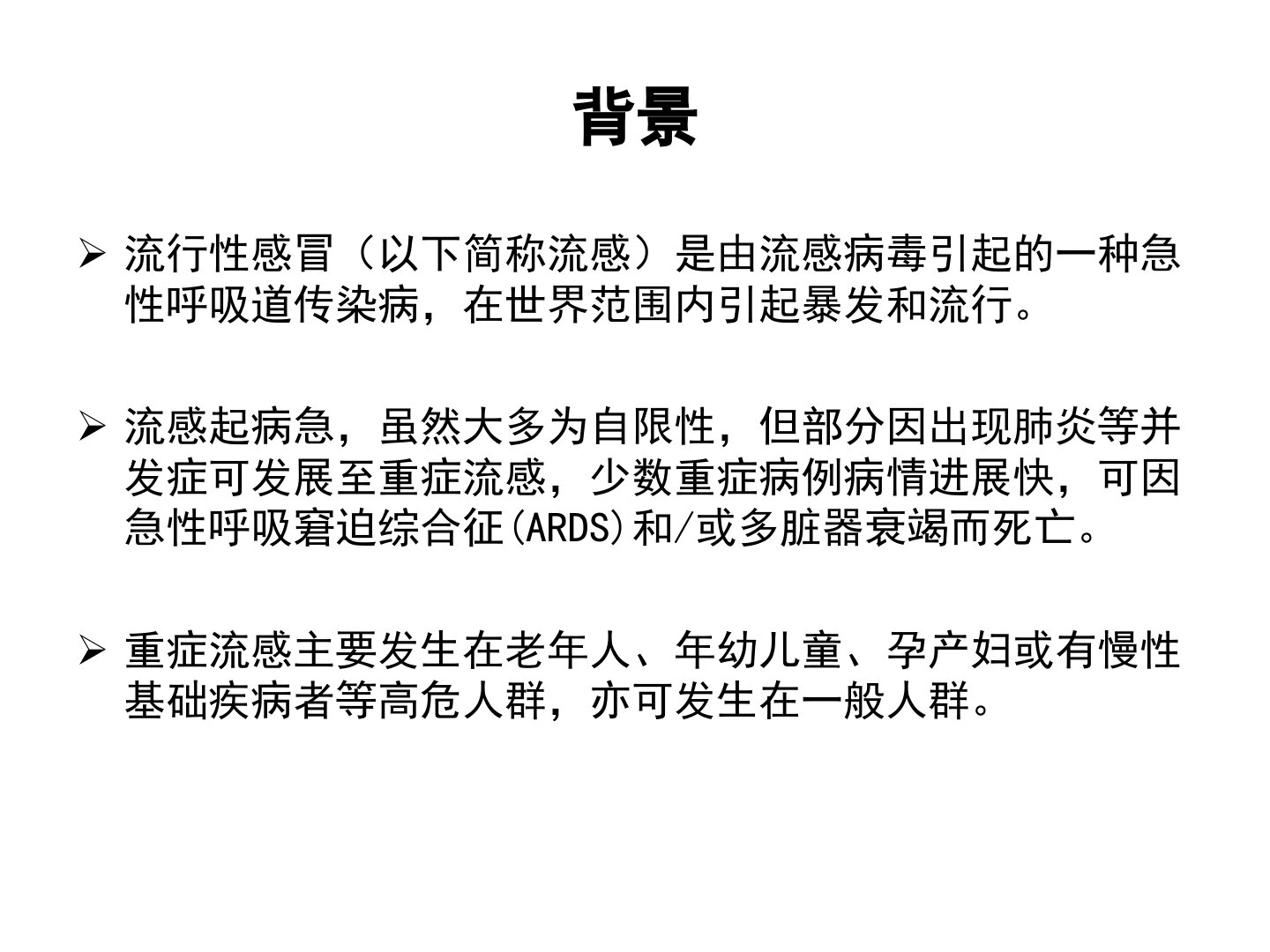 《流行性感冒诊疗方案(2018年)》摘要2017年入冬以来我国流感活动水平上升快当前处于冬季流感流行高峰本次冬季流感活动强度强于往年。为规范流感临床管理减少重症发生、降低病死率特制定本方案。流感由流感病毒引起病毒属于正粘病毒科为RNA病毒分为甲、乙、丙、丁四型目前感染人的主要是甲型中的H1N1、H3N2亚型及乙型中的Victoria和Yamagata系。传染源包括患者、隐性感染者及受感染动物主要通过飞沫传播人群普遍易感。流感起病急潜伏期17天症状包括发热、头痛等肺炎是常见并发症。诊断结合流行病学史、临床表现和病原学检查。重症与危重病例有明确判定标准需与普通感冒等鉴别。治疗上应尽早隔离高危人群尽早(48小时内)抗病毒治疗。疫苗接种是预防最有效手段药物预防为紧急临时措施一般预防需保持良好个人卫生习惯。