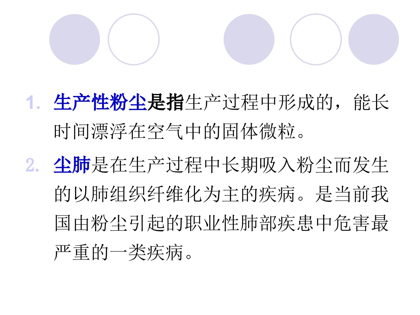 摘要第五章探讨了粉尘与职业性肺部疾患。生产性粉尘指生产过程中形成的能长时间漂浮在空气中的固体微粒尘肺则是长期吸入粉尘导致的以肺组织纤维化为主的疾病是我国危害最严重的粉尘引起的职业性肺部疾患。1672年有石头切割工人死于哮喘的记载1912年南非报告金矿和花岗石采石工中矽肺情况可视为20世纪矽肺研究开端。生产性粉尘来源广泛可分为无机粉尘、有机粉尘和混合性粉尘。粉尘的理化特性中化学组成决定其对机体的作用性质分散度影响粉尘在空气中的悬浮稳定性、生物活性和在呼吸道中的阻留部位浓度与接触时间、颗粒的形态和表面活性、个体因素等也影响其对机体的危害。生产性粉尘对机体健康影响包括在呼吸道的阻留和清除、致病作用。尘肺分为矽肺、硅酸盐肺、碳尘肺等多种类型2005年我国尘肺病例报告多矽肺和煤工尘肺是最主要的尘肺病。尘肺预防采取“八字方针”。硅沉着病(矽肺)是长期吸入游离二氧化硅含量较高的粉尘引起的疾病发病受多种因素影响病理改变为肺组织纤维化等临床表现多样并发症严重诊断依据职业史和X线胸片治疗采取综合医疗保健措施预防采取八字综合防尘措施。硅酸盐肺中石棉肺最常见危害最严重其发病受多种因素影响病理改变为肺间质弥漫性