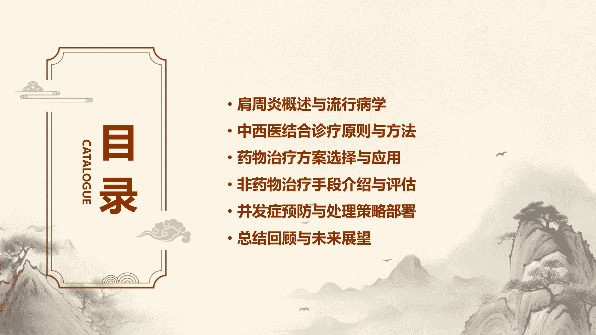 《肩周炎中西医结合诊疗专家共识(2023年)》解读汇报重点如下:肩周炎是肩关节周围软组织不明原因的无菌性炎症表现为疼痛和活动受限夜间加重可自愈。根据病程可分为急性期、粘连期和恢复期女性发病率略高于男性且随年龄增长而上升。中西医结合治疗肩周炎优势显著既注重局部症状改善又重视整体机能调整可减少副作用提高治疗效果。药物治疗方面推荐中药汤剂和外用药物同时可使用非甾体抗炎药和糖皮质激素但需注意副作用。非药物治疗手段包括针灸、拔罐、热敷、超声波、运动疗法和康复体操等均有助于缓解症状。心理疏导和认知行为疗法也可减轻患者疼痛感提高生活质量。此外共识还部署了并发症预防与处理策略并强调科研与临床结合的重要性。未来肩周炎治疗将更注重个体化探索综合治疗模式并借助人工智能技术实现智能化辅助诊疗。
