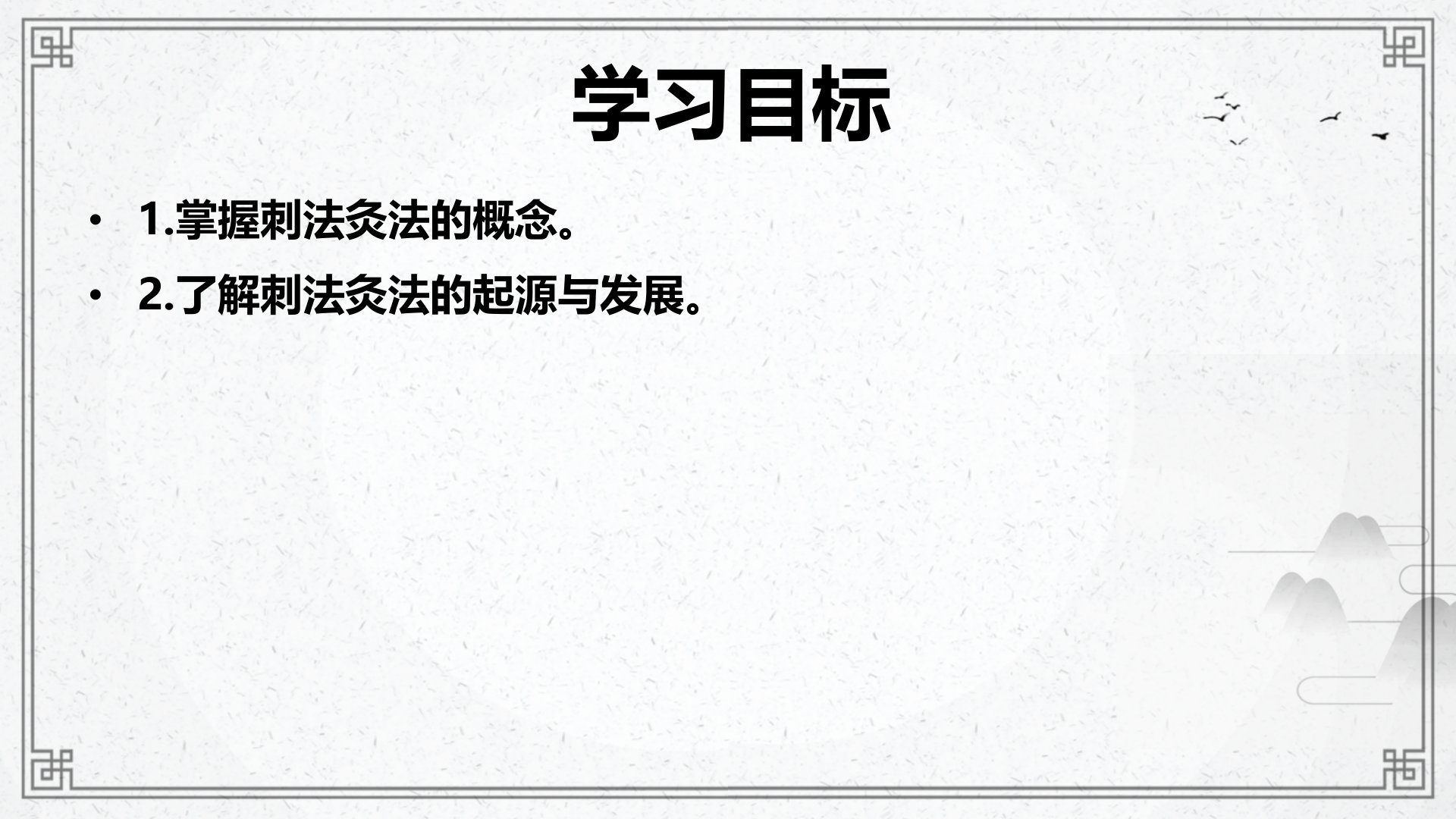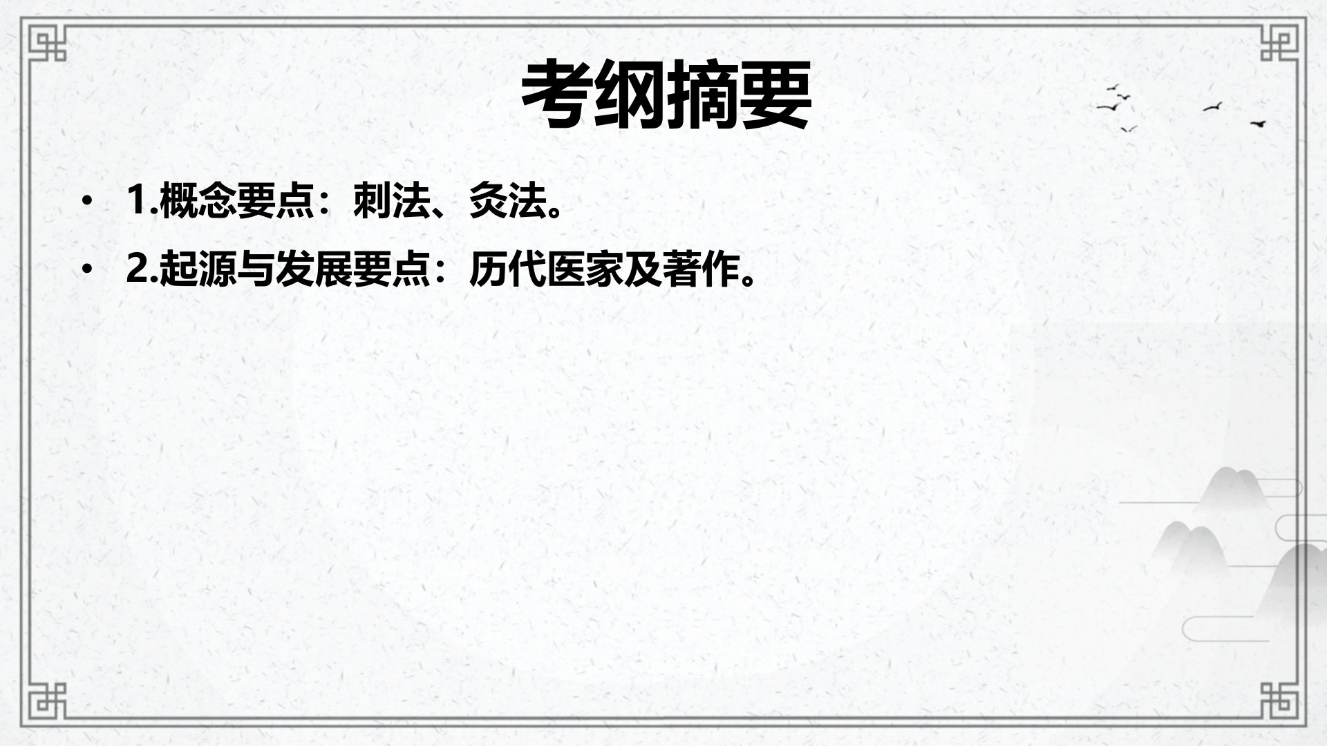刺法与灸法概述摘要学习目标1掌握刺法灸法的概念。2了解刺法灸法的起源与发展。主要内容刺法与灸法的概念刺法古称“砭刺”现指用不同针具刺激腧穴防治疾病的方法;灸法古称“灸焫”是用艾绒等材料烧灼或熏熨腧穴防治疾病的方法。刺法灸法研究刺灸方法的基本知识、操作、临床运用及原理是针灸医学重要部分是基础理论与临床治疗的桥梁课程熟练正确的操作是取得针灸疗效的关键。刺法与灸法的研究内容包括毫针刺法、灸法、拔罐法、刮痧法、其他针具刺法、不同部位刺法及特种刺激法等。刺法的发展简史1针具发展:“砭石”是最原始的“针”起源于新石器时代后发展出骨针、竹针等“九针”最早记载于《灵枢九针十二原》。2刺法发展:早期《内经》总结针刺方法提出根据病情选针具和补泻原则;《难经》强调双手协作;金元时期提出新学说和针法;新中国成立后针刺手法研究取得诸多成果。灸法的发展简史1起源:与火的发现和使用有关古人最早用树枝等取火治病后选艾为灸料。2发展:春秋战国时代已盛行历代医家重视应用有众多专著。现代灸法发展减轻患者痛苦演化出多种灸法还常采用间接灸法。