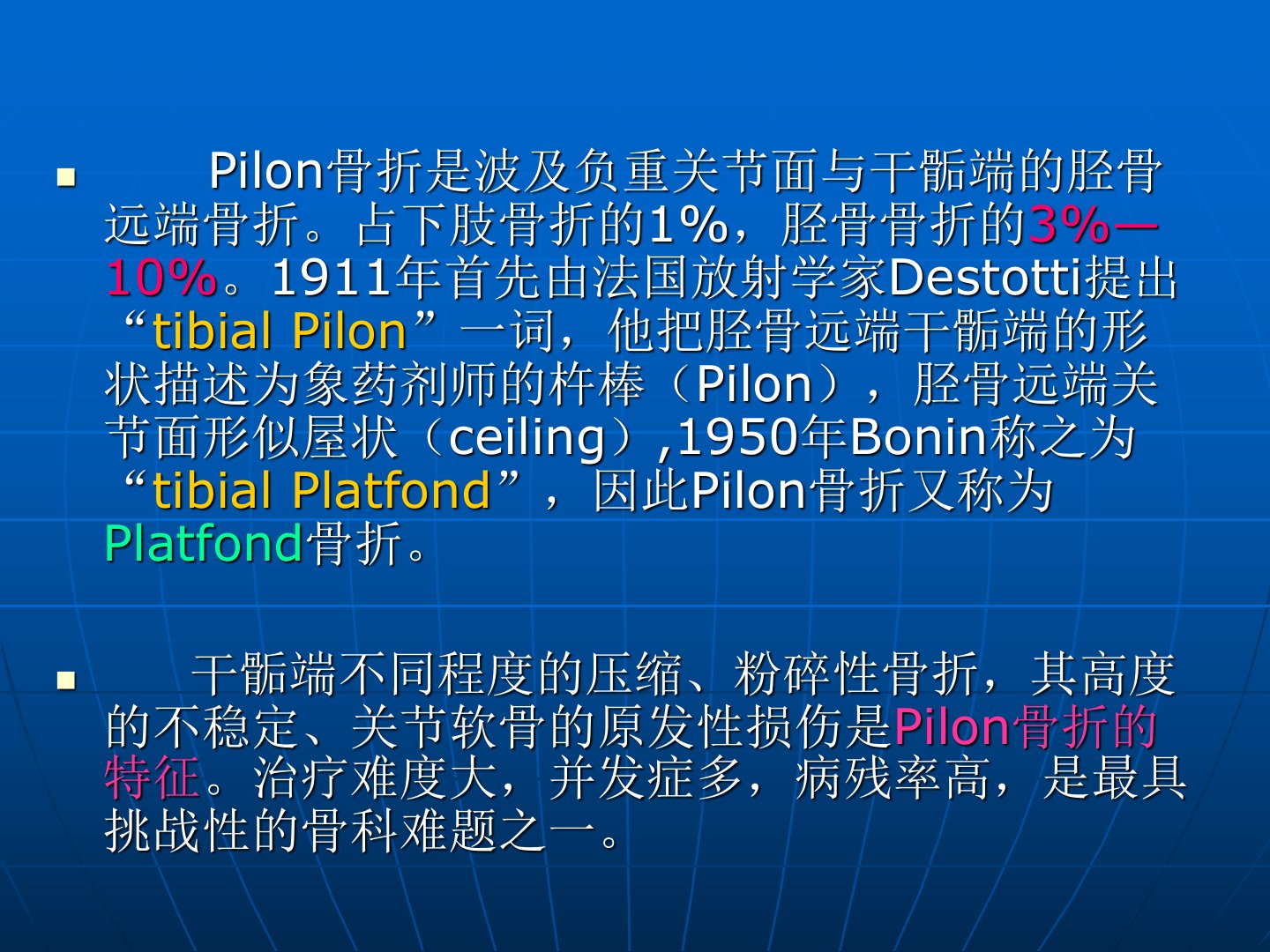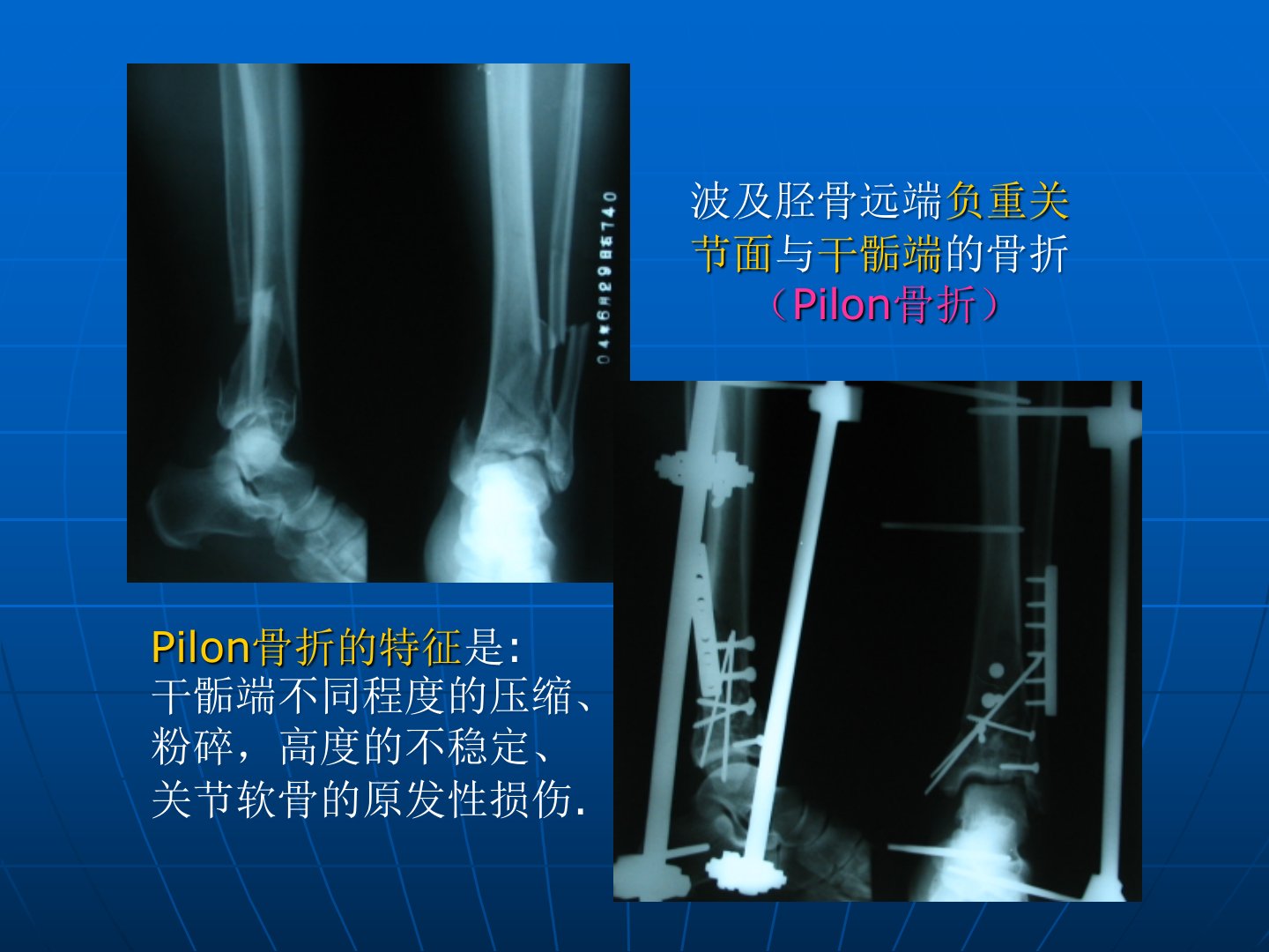 河北省任丘市人民医院骨科张双喜介绍了Pilon骨折相关知识。Pilon骨折是波及负重关节面与干骺端的胫骨远端骨折占下肢骨折的1胫骨骨折的3—10特征是干骺端压缩、粉碎高度不稳定关节软骨原发性损伤治疗难度大。其创伤机制与足的位置和暴力类型密切相关70—85的Pilon骨折合并腓骨骨折。有关Pilon骨折的分类学者们根据不同用途提出了多种分类方法其中Ovidia和Beals将其分为五型Kellam和Waddell分为两型Redi和Allgwer提出了一个简单且符合临床应用的分类方法另外胫骨远端骨折的AO分型也常被应用。诊断时应了解受伤时足的位置、暴力类型详细检查局部皮肤、软组织及神经血管情况常规拍摄X线片区分骨折类型CT检查对判断骨折类型更有帮助。治疗方法包括非手术和手术治疗手术治疗需掌握正确时机以降低软组织并发症的危险性手术方法参照Redi—Allgwer分型主要包括腓骨骨折的复位固定、重建胫骨远端关节面、干骺端骨缺损处植骨、重新连接骨干与干骺端四个步骤。此外还需注意治疗中容易出现的问题及并发症的防治。
