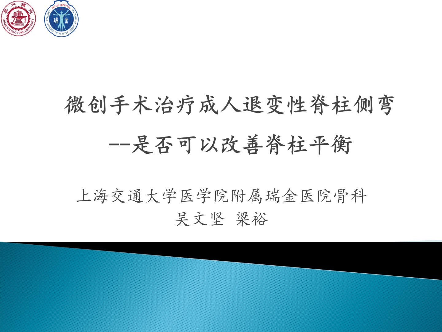 上海交通大学医学院附属瑞金医院骨科吴文坚、梁裕探讨了微创手术(MIS)治疗成人退变性脊柱侧弯的效果。成人退变性脊柱侧弯会导致腰痛、根性疼痛、功能障碍及后凸畸形等问题治疗目的是缓解神经根性疼痛、改善脊柱不稳定和畸形。研究指出在减压基础上添加融合效果优于单纯减压且矫正矢状面畸形比冠状面畸形更为重要。MIS手术通过较小的手术范围和技术减少了对周围组织的损伤降低了发病率并促进了更快的术后功能恢复。文中通过三个案例展示了侧方入路微创手术(DLIF)结合后路手术(PPS)在改善患者冠状面和矢状面平衡方面的显著效果。对于适用患者MISS能有效改善脊柱平衡且可通过分期手术缩短麻醉时间重新评估减压、固定融合范围及截骨问题。