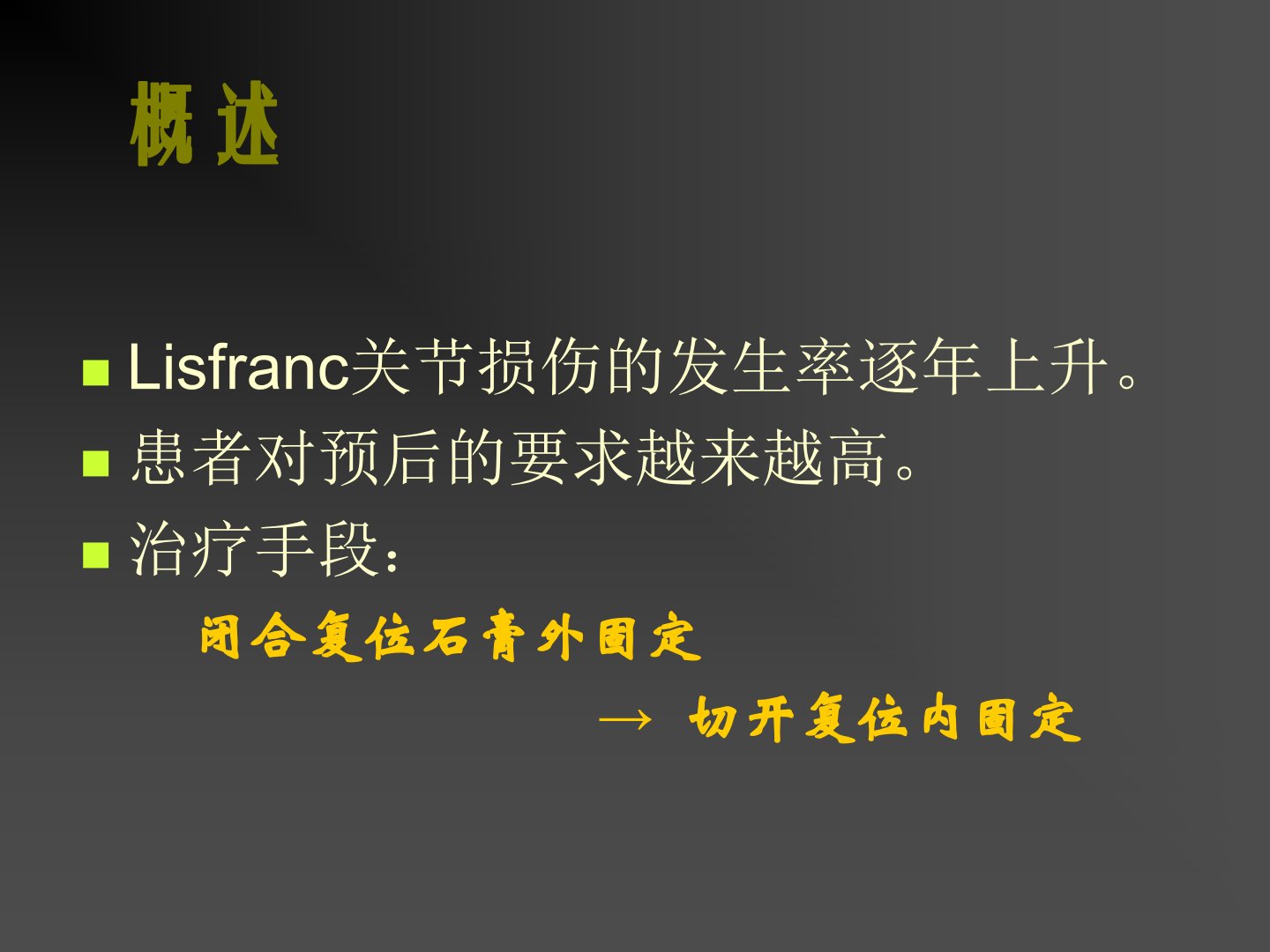 上海交通大学附属第六人民医院骨科王建伟介绍了LISFRANC关节损伤相关知识。Lisfranc关节由跖跗关节等构成其损伤发生率逐年上升患者对预后要求也更高。治疗手段包括闭合复位石膏外固定和切开复位内固定。该关节历史研究可追溯至18世纪1970年代后“解剖复位是良好预后的前提”得到广泛认同。其解剖特点包括独特的骨性结构和韧带结构足底韧带强度大于足背侧。损伤机制包括直接损伤(如击打、挤压伤)和间接损伤(如旋转、轴向暴力)。放射学评价通过正位、斜位、侧位片等多种方式评估关节对位和稳定性CT扫描用于诊断不明显半脱位。QuenuKuss分型将其分为多种类型。临床评价包括症状和体征治疗目的是关节稳定、无痛且保持正常足弓治疗原则是精确解剖复位和有效维持ORIF为常用治疗方法优良率在5095决定预后关键因素是关节复位精确程度此外还可能产生骨筋膜室综合症等并发症。