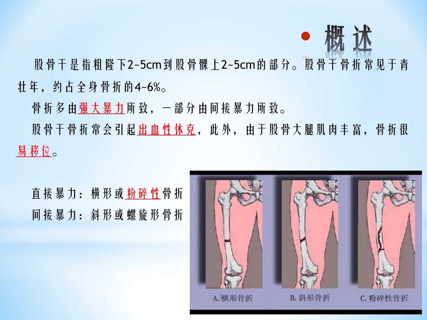 重庆医专刘子琳介绍了股骨干骨折术后康复内容。股骨干指粗隆下25cm到股骨髁上25cm部分常见于青壮年约占全身骨折的46多由强大或间接暴力所致常引起出血性休克且易移位。股骨干被三组肌肉包围股骨是人体最长最粗的管状骨对下肢活动起重要支撑作用。临床表现上患者局部疼痛剧烈活动受限甚至休克大腿肿胀有畸形、骨擦感等下13骨折可能合并血管神经损伤。治疗上非手术治疗适用于稳定骨折等用持续股牵引复位配合小夹板固定;手术治疗适用于非手术治疗失败等情况内固定方法有髓内钉固定和加压钢板螺钉固定。康复评定包括肢体长度、肌力、关节活动度等多方面。康复治疗分阶段进行外伤炎症期、骨痂形成期均进行关节活动度训练、肌力训练和理疗骨痂成熟期增加关节牵引、耐力训练、平衡训练等。