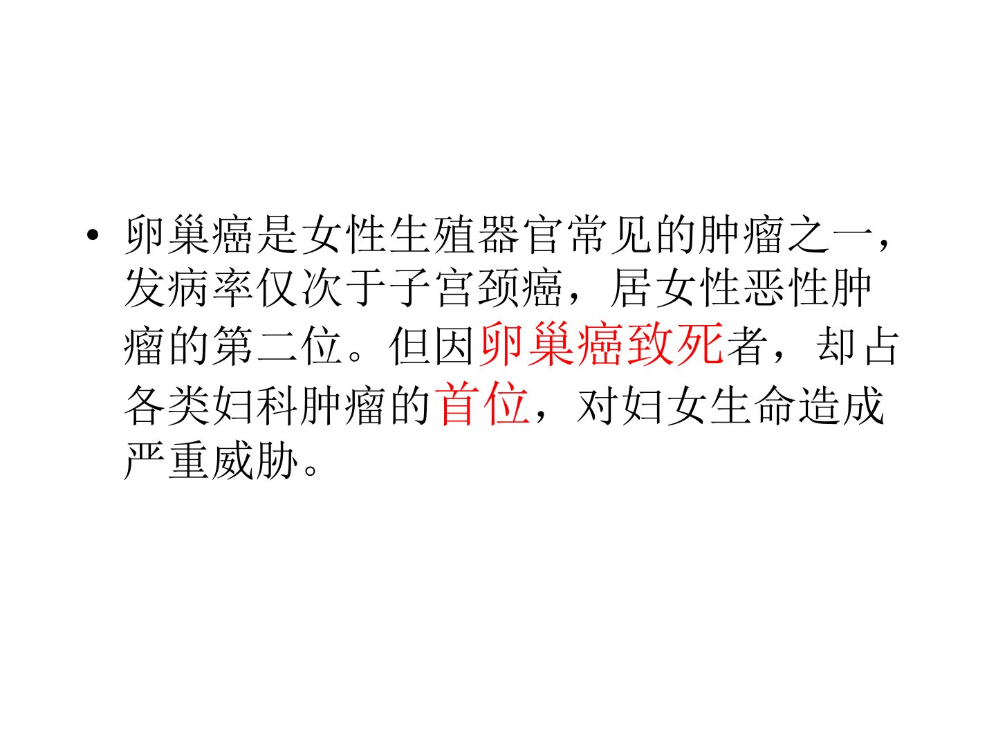卵巢癌相关知识及放、化疗护理摘要卵巢癌是女性生殖器官常见肿瘤发病率居女性恶性肿瘤第二位但致死率居妇科肿瘤首位。其病理分类包括上皮性、性索基质、生殖细胞瘤及转移性肿瘤。卵巢癌扩散主要通过直接蔓延和淋巴转移。临床表现上初期症状不明显后期则包括腹部膨胀、压迫症状、营养不良、月经紊乱等。并发症有蒂扭转、肿瘤破裂和感染。治疗原则方面良性肿瘤应手术治疗恶性肿瘤则采取综合治疗以手术为主化疗放疗为辅。治疗中存在忽视癌前病变、延误手术时机等误区。护理方面放化疗患者需预防消化道、呼吸道及注射部位感染注意高热护理、心理护理和骨骼抑制的监测。腹水患者则需限制活动保持皮肤清洁定期测量体重腹围限制水钠摄入。健康宣教包括早发现早治疗、术后随访检测及饮食调整建议。
