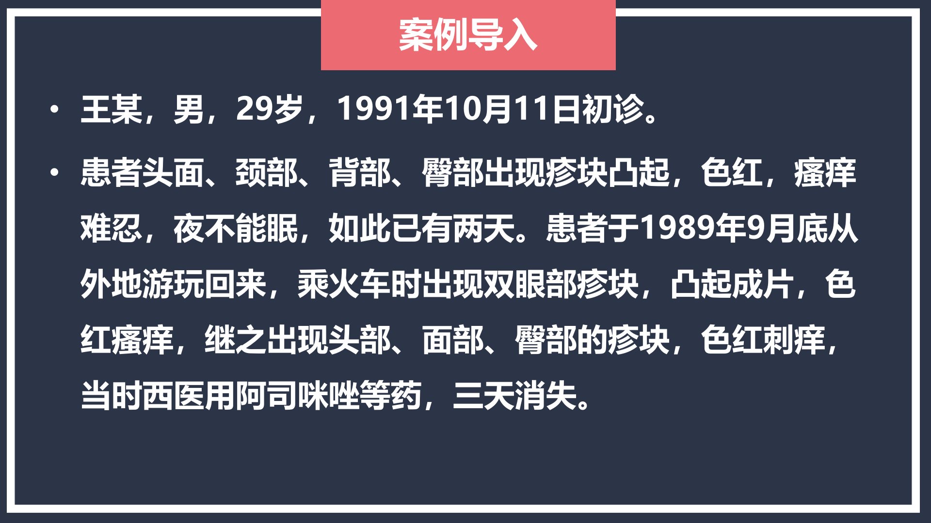 1991年10月11日29岁男性患者王某初诊其头面、颈、背、臀部出现色红凸起疹块瘙痒难忍夜不能眠已持续两天。患者1989年9月曾有类似发作西医诊断为“尘螨过敏”多次治疗无效近半年常服阿司咪唑。刻诊见红疹、心情急躁、全身乏力等症状舌淡尖红、苔白根黄、脉细数。隐疹即荨麻疹是过敏性皮肤病多与禀赋不耐、风邪侵袭等因素有关病机为营卫失和、邪郁腠理病位在肌肤腠理与肺胃相关。治疗以疏风和营、透疹止痒为主取手阳明、足太阴经穴如曲池、合谷等。配穴依证型选择如风热犯表配大椎、风池。操作采用毫针常规刺还有耳针法、拔罐法等其他疗法。针灸治疗隐疹疗效良好与月经相关的隐疹应调经同时患者需忌食辛辣刺激性及鱼虾等食物。