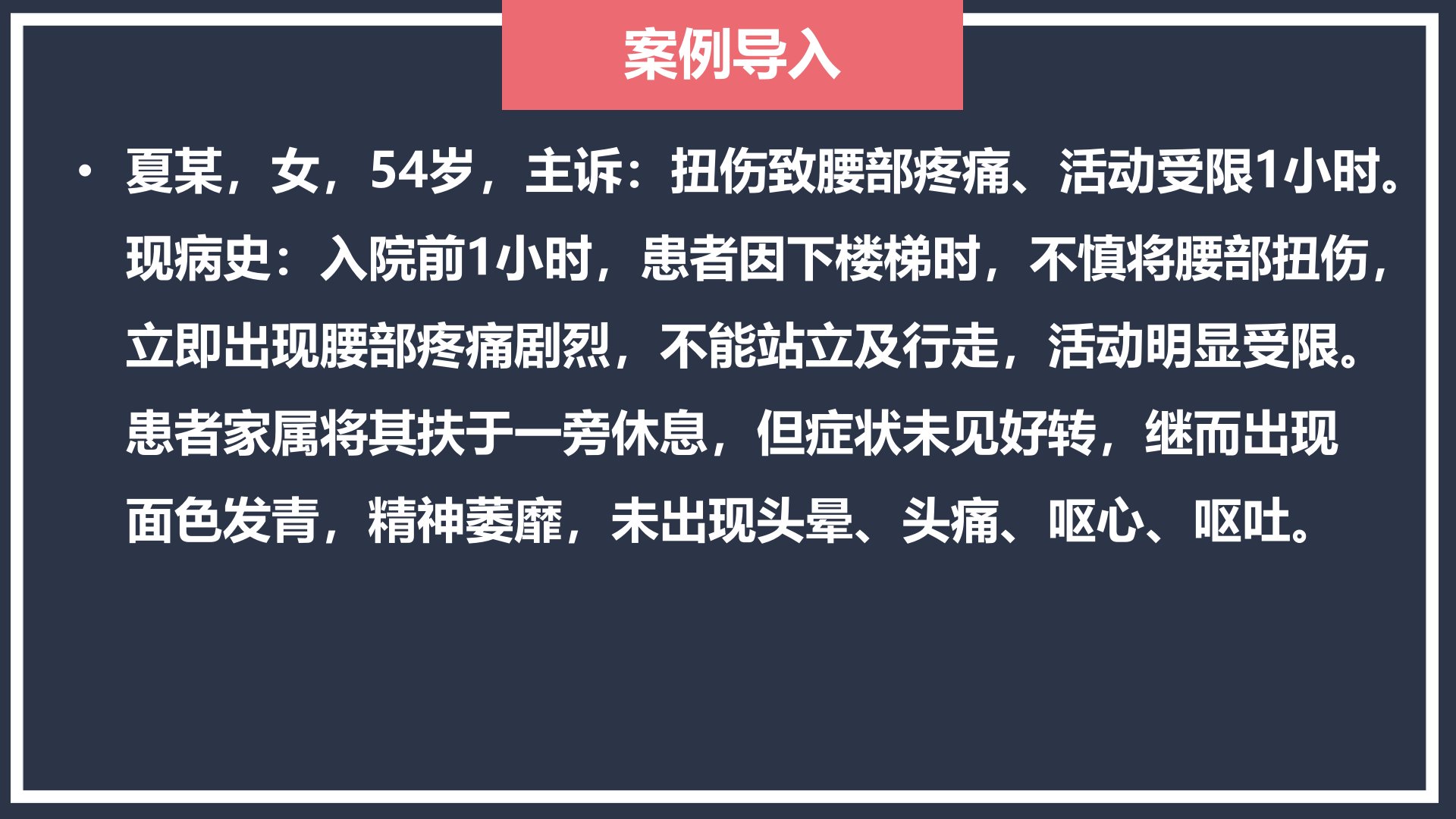 夏某54岁女性因下楼梯不慎扭伤腰部出现剧烈疼痛、活动受限1小时而入院未见其他症状。查体见腰部右侧肌肉紧张肿胀压痛明显活动受限舌暗红或有瘀点苔薄脉弦紧。急性腰扭伤多因外力牵拉致腰部软组织撕裂青壮年、体力工作者和运动员常见病机为腰部经气不通、气血瘀滞与督脉、膀胱经等经脉关系密切。辨证要点包括突发腰痛、活动受限气滞血瘀型见剧烈疼痛、腰肌痉挛舌暗红或有瘀点苔薄脉弦紧。治疗以通经活络、舒筋止痛为主主穴取阿是穴、委中、后溪、腰痛点配穴根据证型选择。其他治疗包括刺络拔罐、耳针、穴位注射等。针灸治疗急性腰扭伤效果显著但需注意鉴别诊断日常应加强腰腹部核心肌力训练。