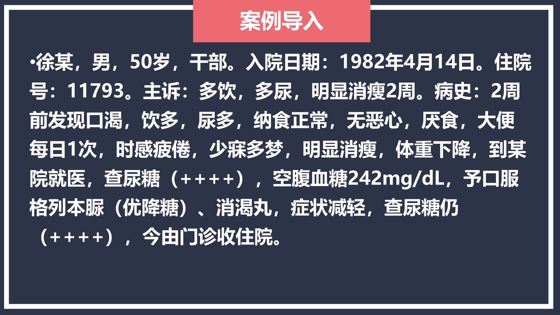 50岁干部徐某主诉多饮多尿、明显消瘦2周查尿糖阳性空腹血糖高曾口服格列本脲、消渴丸症状减轻但尿糖仍阳性后住院。查体见患者神清合作面色萎黄形体消瘦舌红苔薄黄脉沉细。消渴病多见于西医学的糖尿病多与禀赋不足、饮食不节、情志失调、劳欲过度等因素有关基本病机是阴虚燥热病位主要在肺、胃、肾以肾为关键临床上根据症状分为上、中、下三消。治疗以清热润燥、养阴生津为基本原则取相应背俞穴为主如胃脘下俞、肺俞等配穴根据证型选择。其他治疗方法包括耳针法、穴位注射法等。按语提示消渴病患者皮肤易感染用穴宜精专针刺时注意严格消毒针灸治疗消渴对早、中期患者及轻型患者效果较好。西医学中的尿崩症与消渴病有相似之处可参考治疗。
