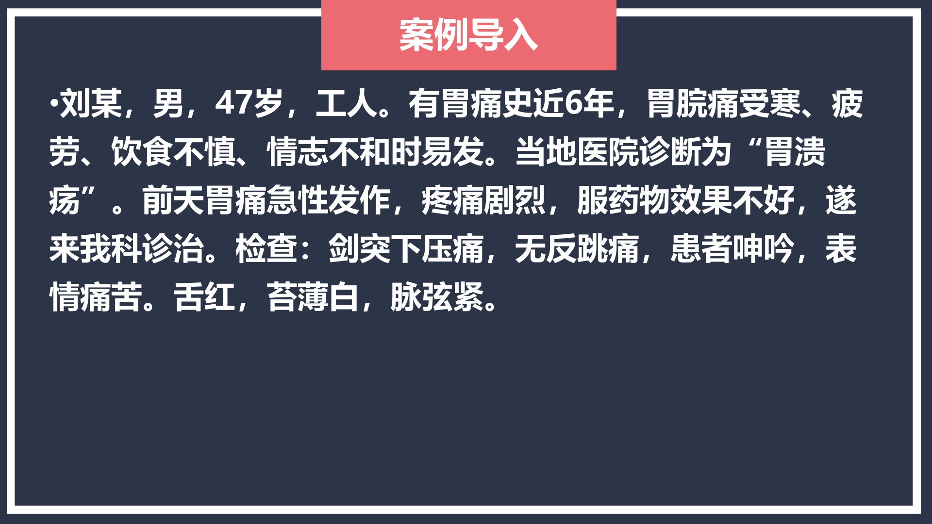 刘某47岁男性工人有6年胃痛史被诊断为“胃溃疡”。近日胃痛急性发作服药无效后前来就诊检查显示剑突下有压痛患者表情痛苦。胃痛又称“胃脘痛”相当于西医学的急慢性胃炎、胃及十二指肠溃疡等多种疾病。胃痛的发生与寒邪客胃、饮食伤胃、肝气犯胃和脾胃虚弱等因素有关基本病机是胃气失和等病位在胃与肝脾关系密切。胃痛主症为上腹胃脘部疼痛辨证分型包括寒邪犯胃、肝胃气滞、胃热炽盛、食滞胃肠、瘀阻胃络、胃阴亏虚、脾胃虚寒等。治疗以和胃止痛为主取胃的募穴、下合穴主穴选中脘、足三里、内关、公孙配穴依证型选择。急性胃痛每日治疗12次慢性胃痛每日或隔日治疗1次。其他疗法包括穴位注射和耳针法。胃下垂多与禀赋不足等因素有关基本病机是脾虚气陷治疗以健脾益气升阳举陷为主。