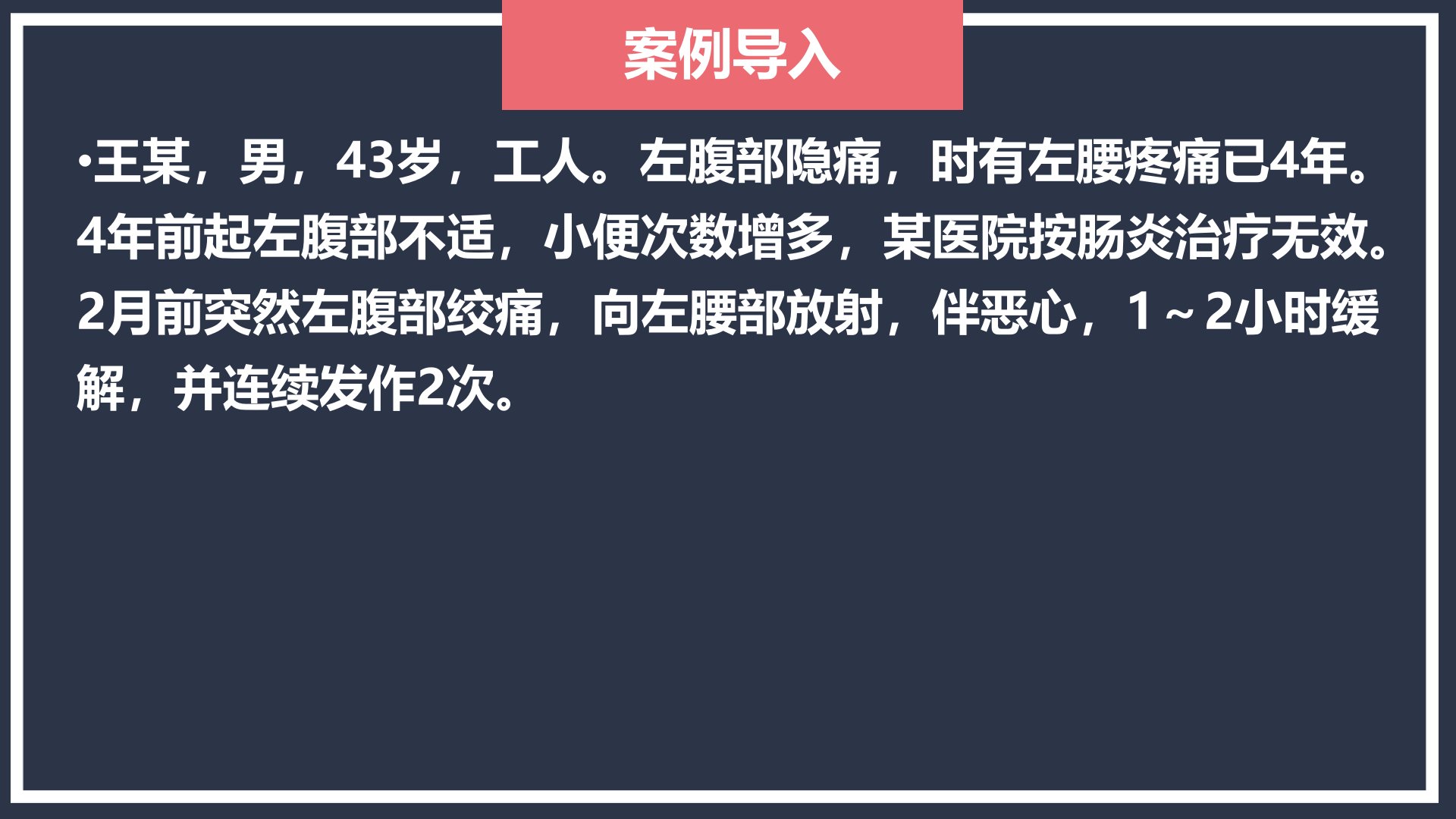 王某43岁男性工人4年来左腹部隐痛、腰疼小便次数增多曾被误诊为肠炎。2月前左腹部绞痛向左腰部放射伴恶心1月前检查发现左输尿管中段有结石后确诊为左肾积水建议手术治疗但患者有顾虑服排石汤近30剂无效后求治于针灸。查体见面色白、语声低微、左肾区压痛明显等症属淋证中的石淋。淋证以小便频数短涩、滴沥刺痛等为主要特征分为热淋、石淋、血淋、气淋、膏淋和劳淋六种类型好发于代谢异常等人群。其病因病机主要与饮食不节、年老体衰等因素有关基本病机为湿热蕴结膀胱、气化不利病位在膀胱和肾。治疗以利尿通淋为主取膀胱俞、中极等穴配穴依证型选择针用泻法或补泻兼施。其他治疗包括耳针、电针、皮肤针法。针灸可缓解急性期疼痛但上段结石等应综合治疗。石淋患者应多饮水、多活动气血虚衰者可辅以药物。