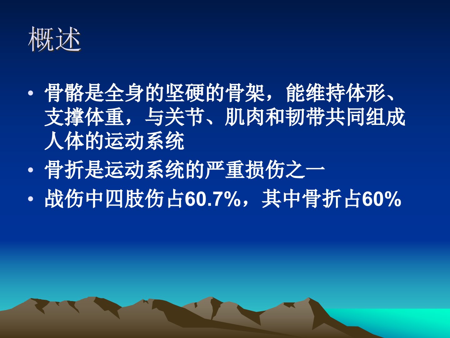 骨折知识摘要骨骼与关节等构成人体运动系统骨折是其中严重损伤。其定义为骨的完整性或连续性中断成因包括直接、间接暴力肌肉拉力积累性劳损外伤性及骨骼疾病等。骨折分类上按是否与外界相通分为闭合性和开放性骨折;按程度及形态分不完全和完全骨折还有稳定性和不稳定性骨折。诊断依据有畸形、反常活动、骨擦音等专有体征。并发症分早晚期早期如休克、内脏损伤等晚期如创伤性关节炎、关节僵硬等。骨折愈合分血肿形成演进期、纤维愈合期等阶段还可能出现延迟愈合、畸形愈合等情况。影响愈合因素有全身的年龄、健康情况等局部的血液供应、损伤程度等。骨折急救要抢救生命、保护伤肢等。治疗原则是复位、固定、功能锻炼复位有手法和切开复位固定用外固定架等功能锻炼要循序渐进。饮食方面一般饮食选多品种、易消化食物早期清淡中期高营养后期补益同时要注意忌盲目补钙、偏食等。