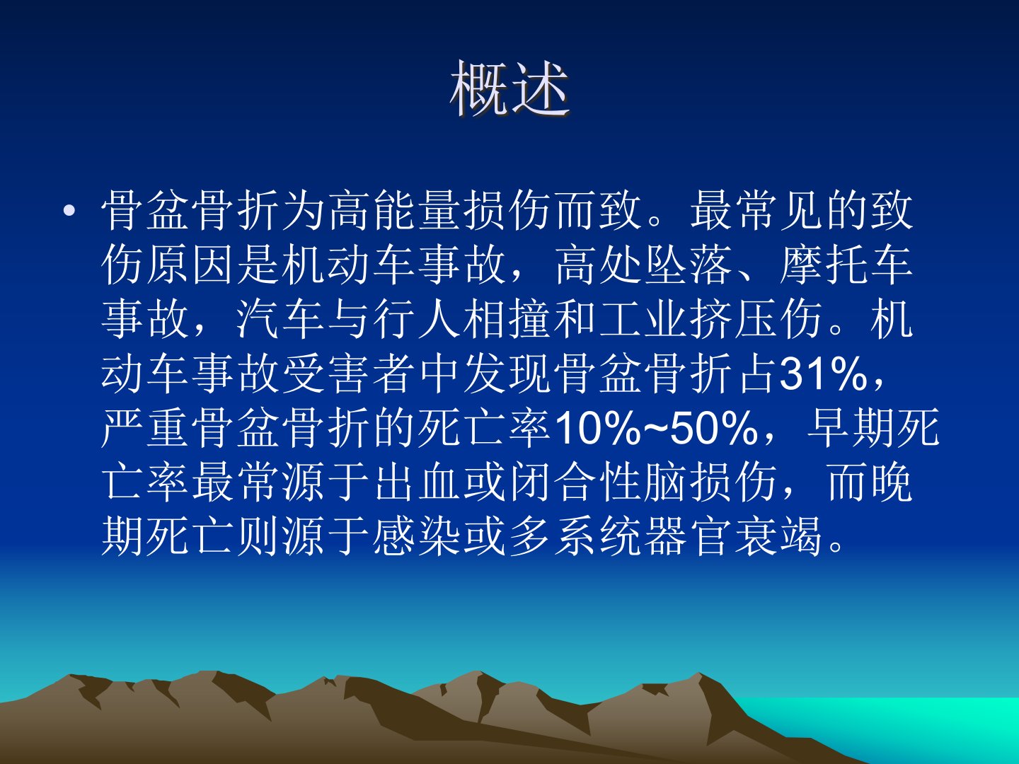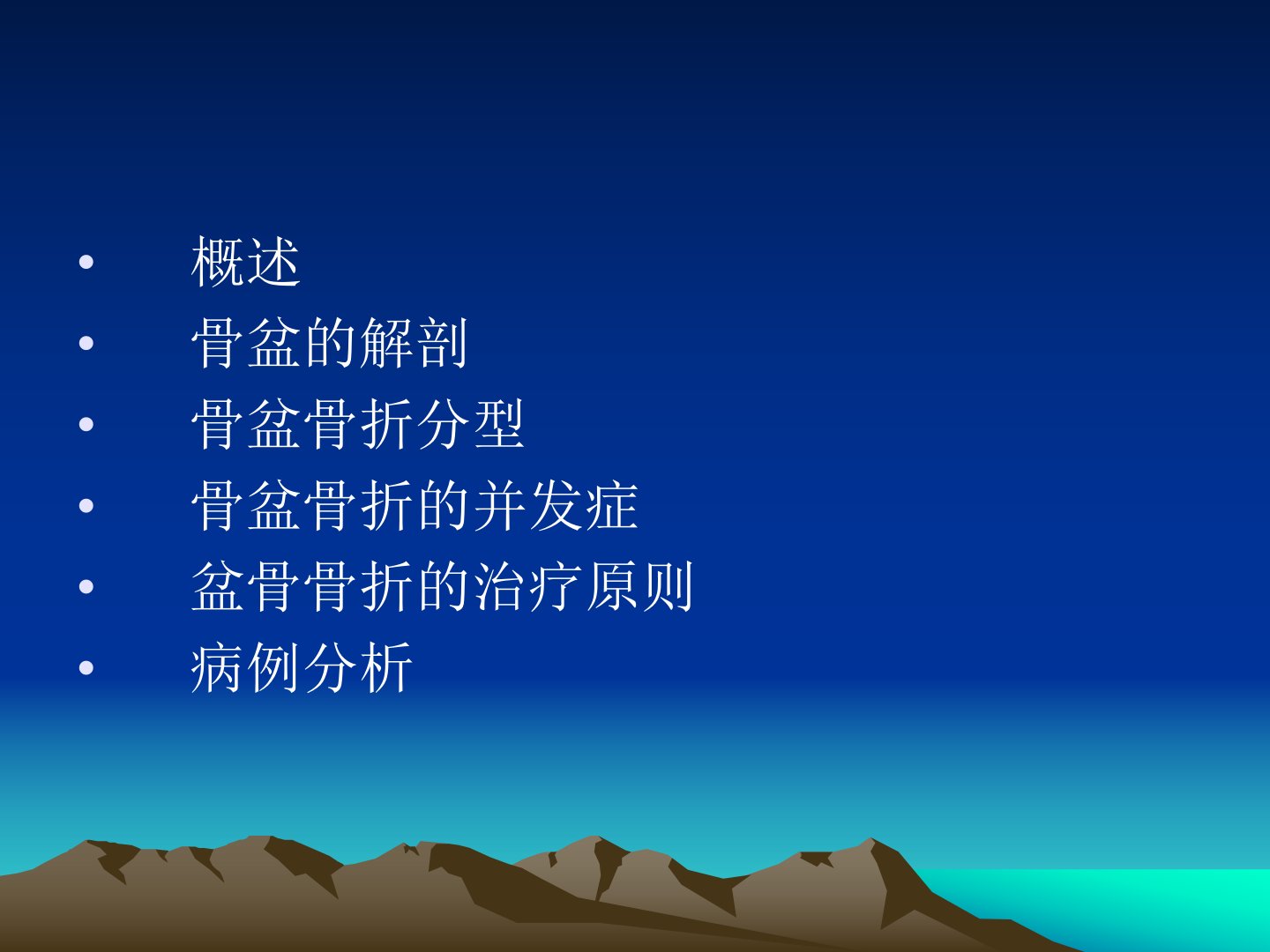 骨盆骨折多为高能量损伤所致常见于机动车事故、高处坠落等严重骨盆骨折死亡率较高。骨盆由多块骨骼通过韧带连接而成稳定性依赖不同韧带。骨盆骨折分型采用Tite分型系统分为A型(稳定性)、B型(部分稳定性)和C型(不稳定性)。并发症包括:尿道破裂患者会出现膀胱膨胀、排尿困难等症状;膀胱破裂分为腹膜内和腹膜外两种会引起腹膜炎、腹痛等症状;直肠破裂患者下腹疼痛有里急后重感需急诊做剖腹探查术;血管破裂常致病人陷于休克状态;神经损伤比较少见多因骨折移位牵拉或骨折块压迫所致早期发现并及时处理预后较好。治疗原则方面稳定无移位骨折采用早期活动和骨伤药治疗;旋转不稳定骨折可用前方外固架或切开前方钢板内固定;TiteC型骨折需后方固定。病例中患者因车祸入院经检查发现多处骨折治疗期间出现复杂病情最终确诊为骨盆骨折合并肠道损伤等建议转上级医院救治。同时病例反映出三级查房、会诊等核心制度落实不到位。