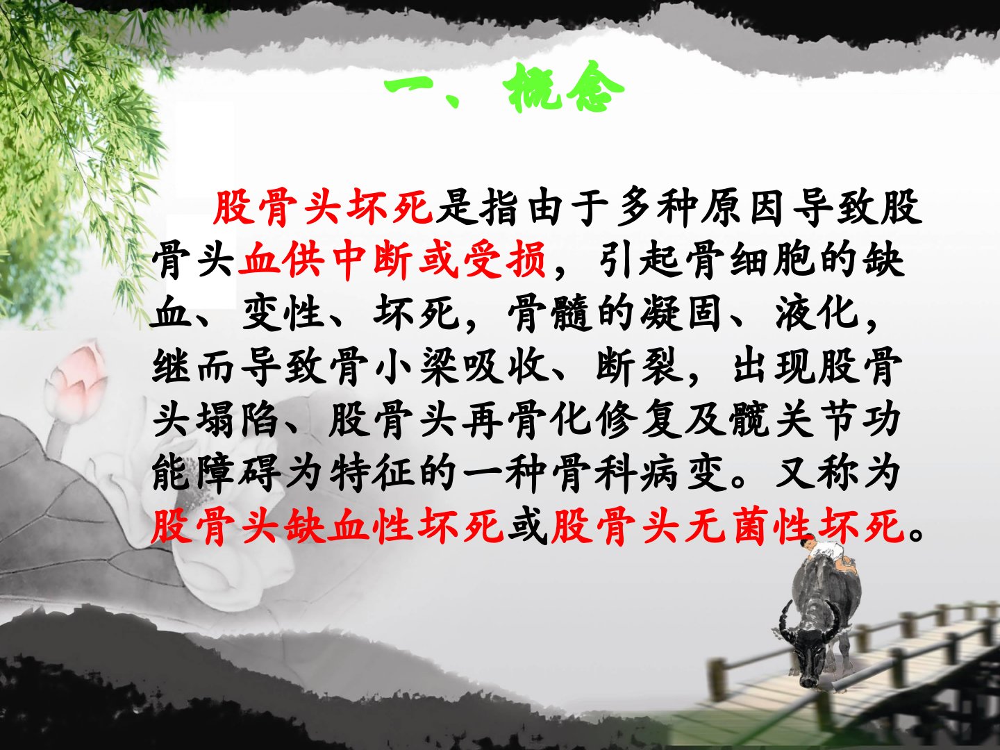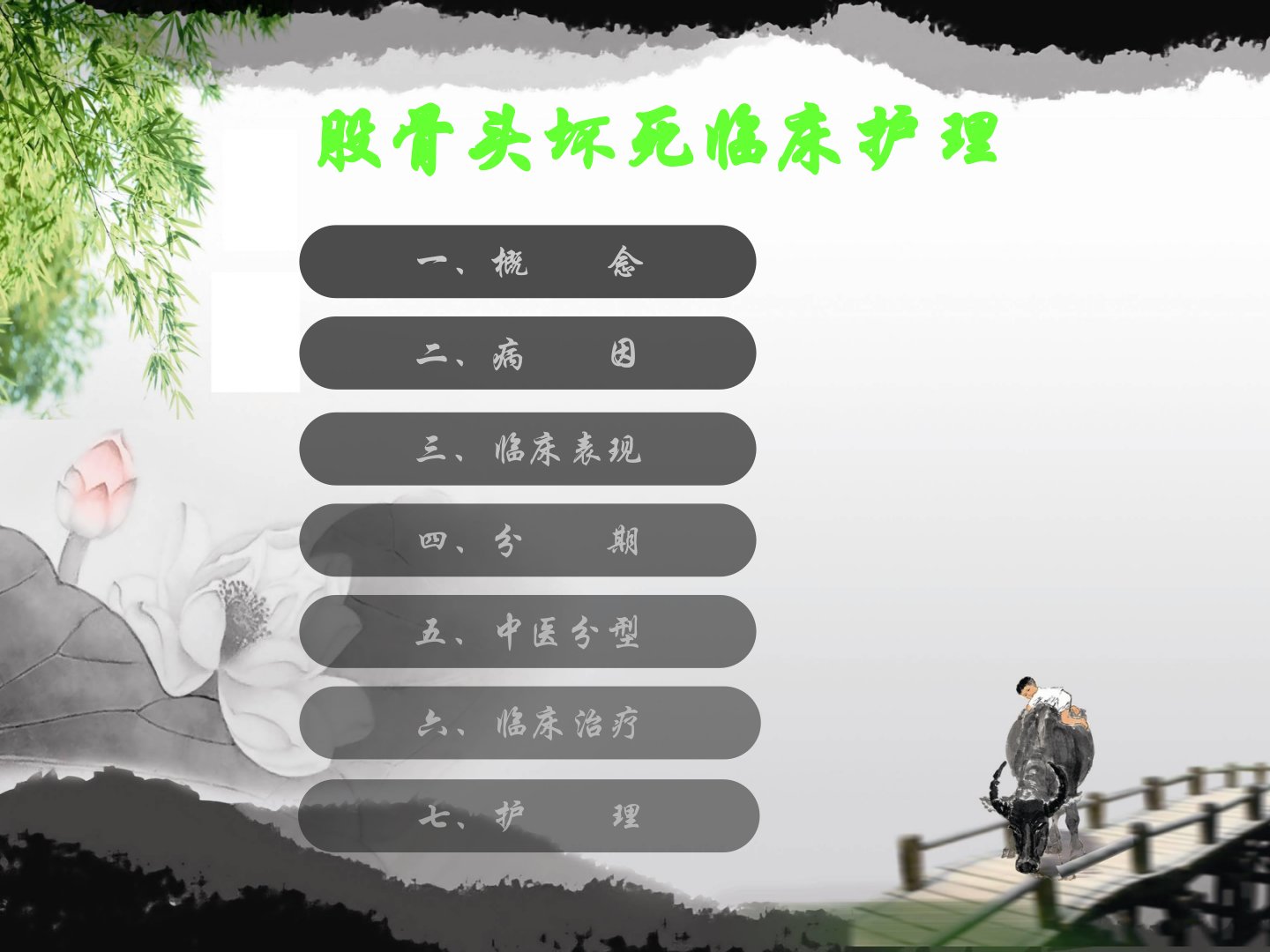 股骨头坏死临床护理摘要股骨头坏死是因多种原因导致股骨头血供受损引发骨细胞缺血、坏死及髋关节功能障碍的骨科病变也称股骨头缺血性坏死或无菌性坏死。其病因多样包括局部创伤、滥用激素药物、过量饮酒吸烟、髋关节发育异常及骨质疏松等。临床表现上患者常感持续性髋痛活动后加剧伴有关节僵直、跛行等症状严重者肌肉萎缩、半脱位。病理学及临床分期(如Ficat分期改良)依据X片影像学形态分为亚健康期、早期、中期和晚期各期症状与影像学表现各异。治疗需综合考量护理方面包括一般护理如饮食宜清淡高钙、多维生素忌烟酒辛辣;创造舒适环境;指导正确功能锻炼如“功能八步”操踩车、游泳等非负重锻炼以及拄拐、甩足等辅助方式。同时注重患处保暖与理疗加强医患沟通缓解患者焦虑并仔细观察病情变化及时报告处理。此外还需针对不同证型如肝肾阴虚型等进行辩证施护。