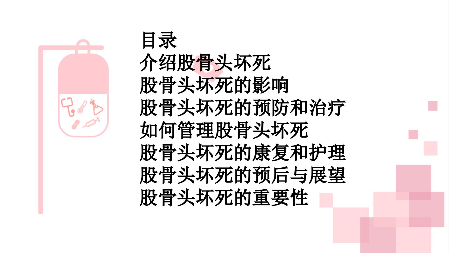 股骨头坏死是血液供应不足导致的骨组织死亡病症症状包括髋关节疼痛、步行困难、肢体无力等常见原因有酗酒、长期激素使用、外伤等。此病症会破坏髋关节的正常结构和功能影响行走和日常生活晚期病情严重或需手术治疗如髋关节置换。预防上可通过改变生活方式如戒酒、戒烟、避免过度运动并保持健康体重以减少风险。治疗方面可采取药物治疗缓解疼痛、控制病情物理治疗如热敷、按摩、理疗等恢复髋关节功能病情严重时需手术治疗。康复期应进行相关运动避免过度运动控制体重并遵医嘱。早期发现与治疗可提高康复机会患者需长期随访护理避免复发。股骨头坏死严重影响患者生活质量应关注自身健康出现症状及早咨询医生。