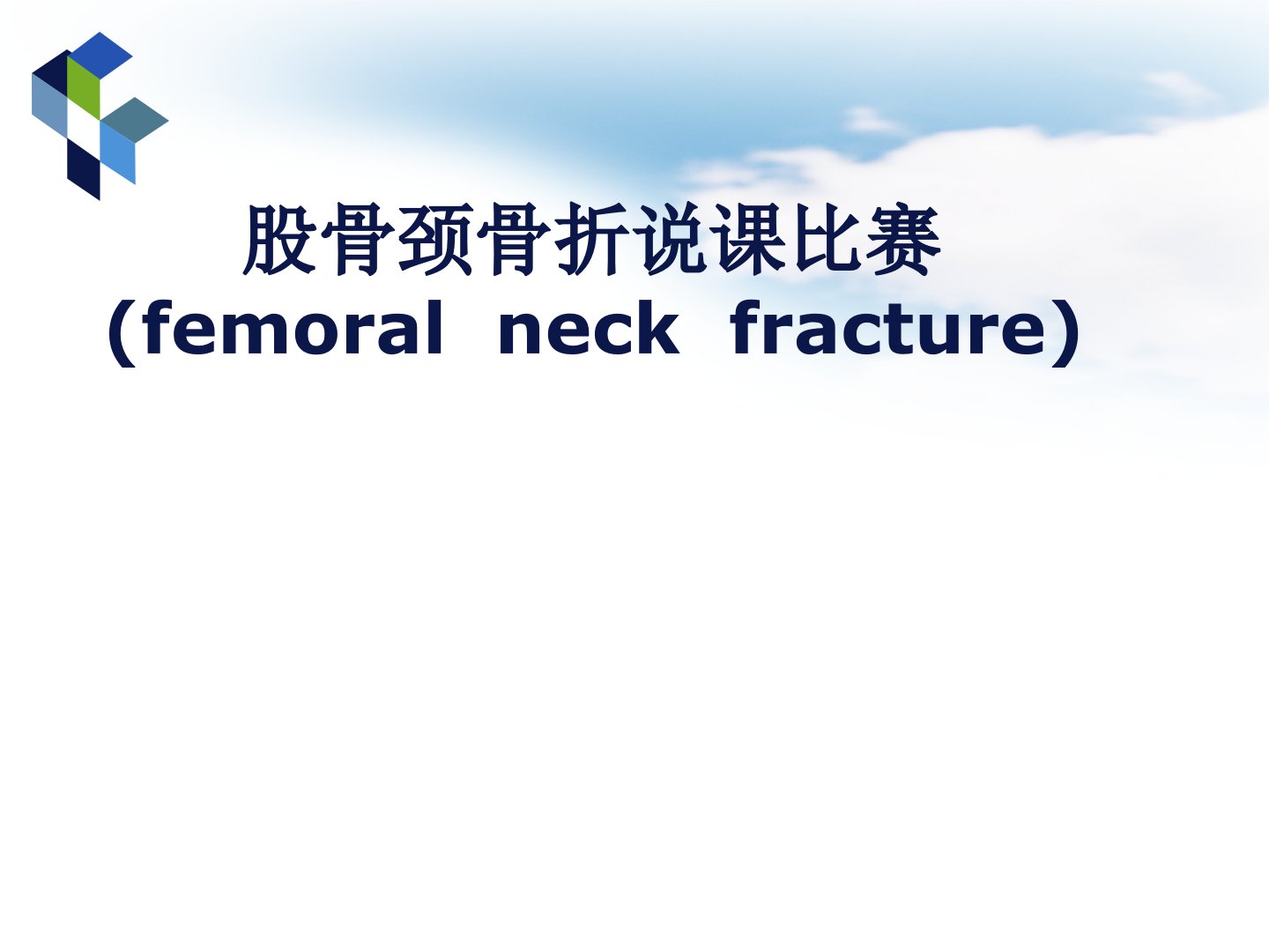 《股骨颈骨折》说课摘要本次说课围绕人卫版外科学中股骨颈骨折内容展开面向大三临床系学生。教材:股骨颈骨折在全身骨折中占比358不愈合率和坏死率较高。学生已有解剖知识基础教学目标包括理解概念分型、回顾解剖、熟悉临床表现与治疗预后等培养独立思考等习惯与创新精神教学重难点为定义、分型、治疗方法选择和预后。教学方法:未详细阐述具体方法。教学过程:先创设情境引入课题介绍定义特点;接着回顾解剖讲解颈干角、前倾角及股骨头血供;然后学习新知介绍骨折类型及移位、临床表现诊断;之后讲解治疗方案保守治疗适用于无明显移位等情况手术治疗分内固定和人工关节置换术;最后互动辩论布置作业给出患者病例提出股骨颈骨折与股骨粗隆间骨折的临床鉴别、股骨颈骨折的Garden分型等思考题。