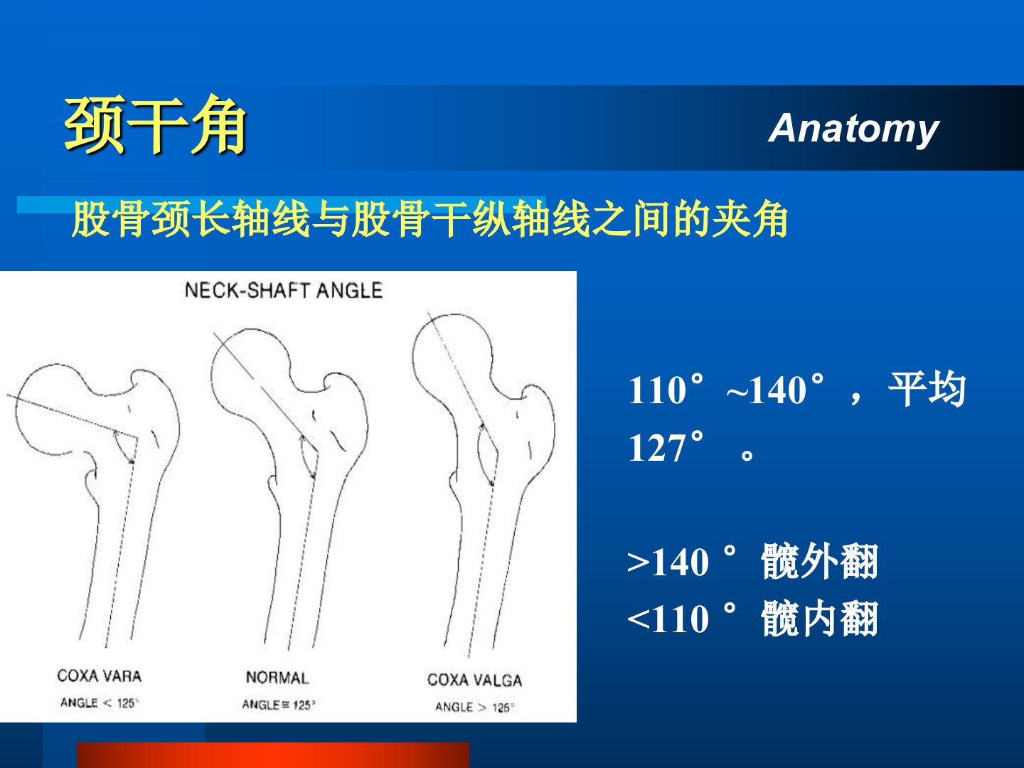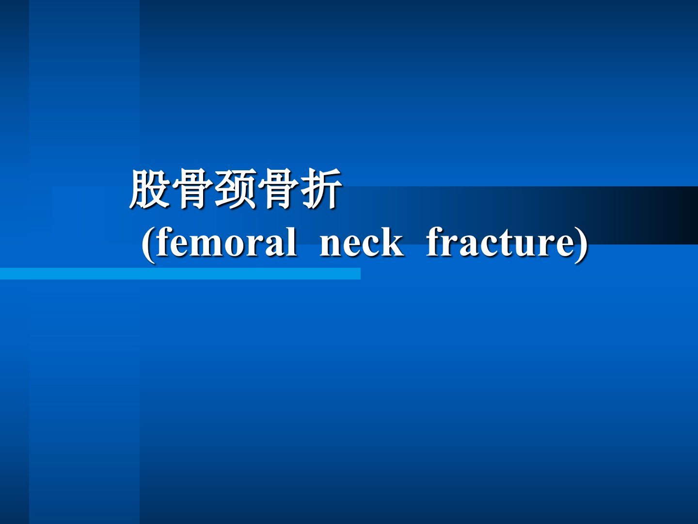 股骨颈骨折指股骨头下至股骨颈基底部间的骨折常见于老年女性与骨质疏松有关不愈合率为1020坏死率为2040。老年患者多因间接暴力致伤青壮年则多由直接暴力引起。临床表现包括畸形、疼痛、患肢短缩等影像学检查可确诊。旋股内侧动脉损伤是导致股骨头缺血性坏死的主要因素。骨折类型及移位程度影响预后移位骨折坏死率高于无移位骨折。治疗选择取决于患者年龄、骨折类型、基础疾病、活动情况及骨质疏松情况。保守治疗包括牵引或防旋鞋但仅适用于无法耐受手术或无活动能力的患者。手术指征根据患者年龄和骨质情况而定包括闭合复位内固定、关节置换术等。手术时机和治疗方法需根据骨折类型和患者情况选择空心钉内固定是常用方法需注意螺钉的平行放置和分布以获得稳定固定和良好抗旋转能力。