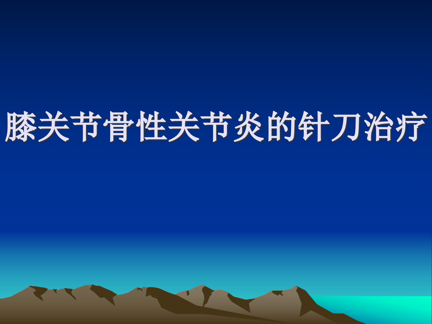 膝关节骨性关节炎的针刀治疗摘要膝关节骨性关节炎是因膝关节劳损导致的退变性、炎性、变形性慢性疾病涉及关节软骨、骨质、滑膜、关节囊等结构的病变。其病因主要为膝关节周围软组织慢性损伤导致膝部生物力学系统力平衡失调产生粘连、瘢痕和挛缩进而引发骨质增生、关节间隙变窄等中晚期表现。临床表现上早期有膝关节疼痛、行走不便、关节伸屈受限等症状X线片示无明显关节间隙变窄及骨质增生;中晚期则疼痛加剧X线片示关节间隙明显变窄及骨刺形成。诊断要点包括膝痛、关节弹响、晨僵、年龄、骨性膨大及X线片表现。针刀治疗分早期和中晚期。早期通过松解膝关节周围软组织的粘连、瘢痕和挛缩调节异常应力恢复力平衡;中晚期则通过整体松解降低肌肉韧带拉力恢复正常关节压力。术后配合手法操作如旋转、伸屈膝关节及牵引状态下推拿。治疗时需注意针刀操作到达骨面避免损伤神经血管手法操作力度不宜过重。针刀治疗膝关节骨性关节炎疗效显著。
