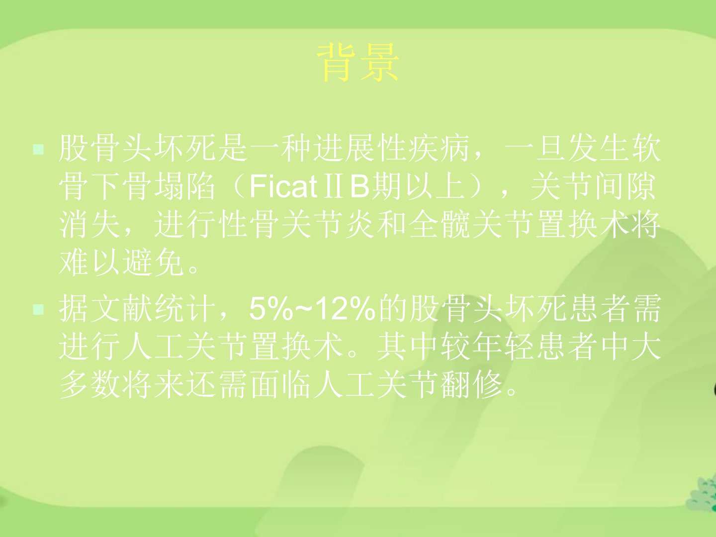 钽(Ta)质地坚硬、延展性强、抗腐蚀性高。髓心减压可清除死骨、降低骨内压利于骨循环重建对延迟股骨头坏死病程进展意义重大。多孔钽棒由钽金属经气化沉淀制成孔率约80结构类似松质骨物理和机械特性接近骨弹性模量介于软骨下骨板与皮质骨之间远低于常用钛合金植入物。其蜂窝状结构生物力学性能接近人体骨质生物相容性高独特构造利于骨诱导能快速使软组织渗入附着负重强度高、弹性模量低可最小化应力遮挡。多孔钽棒可通过微创技术安全有效植入局部并发症小患者恢复快能减少住院日与扶拐助行时间。钽棒植入手术需在C臂透视下操作术后要预防感染、抗凝治疗并按阶段负重行走。病例多选Ficat期股骨头坏死患者陈坚峰等报道显示术后优良率达833。