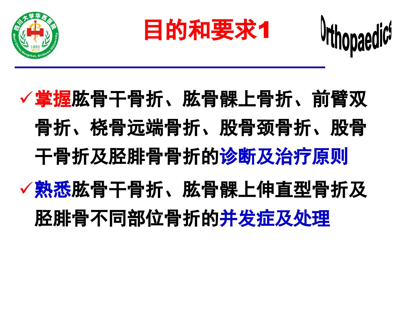 作为医生需掌握四肢与脊柱骨折的诊断及治疗原则。四肢骨折方面需熟悉锁骨、肱骨外科颈、股骨转子间等骨折及腕骨、踝部骨折的诊断与治疗。以肱骨骨折为例其包括肱骨外科颈、肱骨干、肱骨髁上骨折等类型治疗涉及螺钉、克氏针、张力带钢丝等内固定方式以及T形钢板内固定等肱骨干骨折还可能损伤桡神经需及时探查修复。尺桡骨双骨折则要求对位对线良好防治畸形。股骨颈骨折按移位程度分类治疗包括持续皮牵引、空心螺钉内固定等。股骨干骨折治疗需根据年龄、骨折类型选择非手术或手术治疗。胫腓骨双骨折以胫骨治疗为主需根据骨折稳定性选择闭合或切开复位。脊柱骨折需掌握胸腰椎三柱概念及压缩、屈曲分离等骨折类型治疗包括非手术和手术治疗需根据骨折稳定性选择。