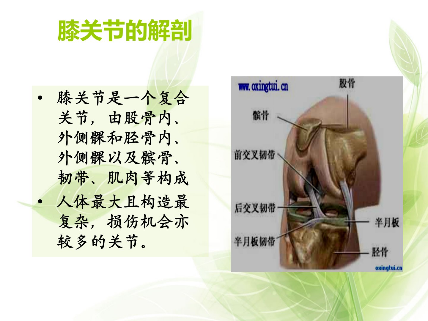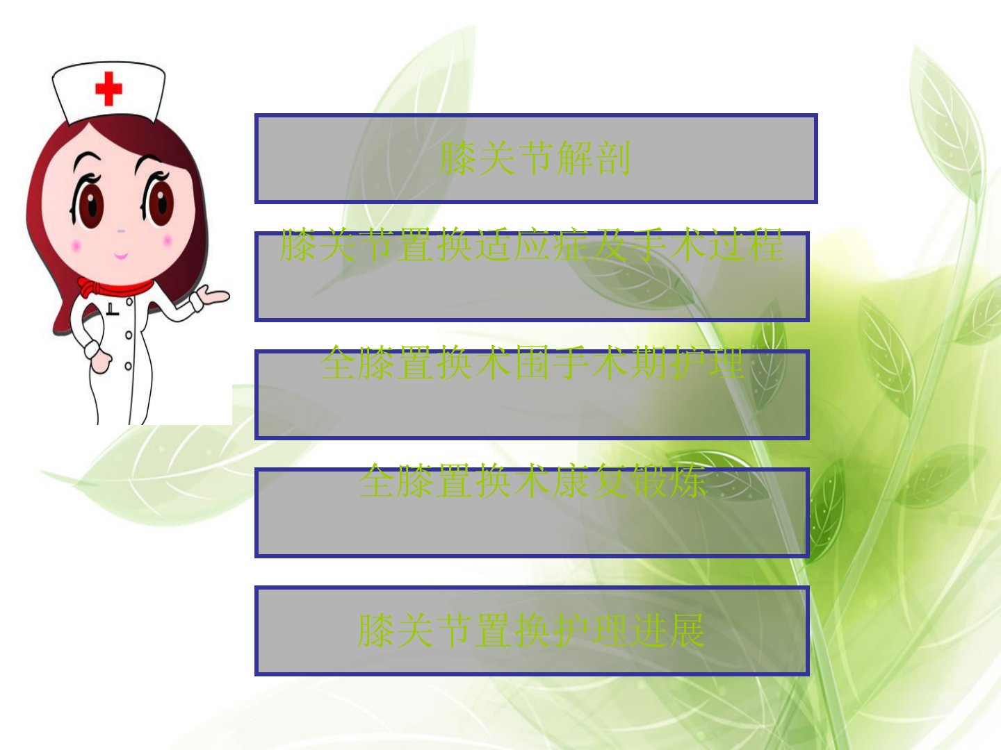 作为医生对人工膝关节置换术的康复护理要点总结如下:膝关节是人体最大且构造最复杂的关节。人工膝关节置换术主要适用于类风湿性关节炎、强直性脊柱炎、骨性关节炎等多种膝关节疾病及畸形。手术过程通过前正中入路清除增生滑膜、骨刺松解软组织纠正畸形并安装假体。围手术期护理至关重要包括术前皮试、备皮、配血术后麻醉护理、体位护理、切口及引流管护理等。康复锻炼分阶段进行从手术当天的踝关节屈伸练习到术后各阶段的股四头肌等长收缩、直腿抬高、膝关节屈伸及CPM被动功能锻炼再到下地负重及上下楼梯训练逐步增强关节功能。日常生活中患者需注意减轻关节磨损、预防跌倒。全膝关节置换术发展迅速微创和导航技术是未来趋势可提高手术精准度减少创伤加速康复。