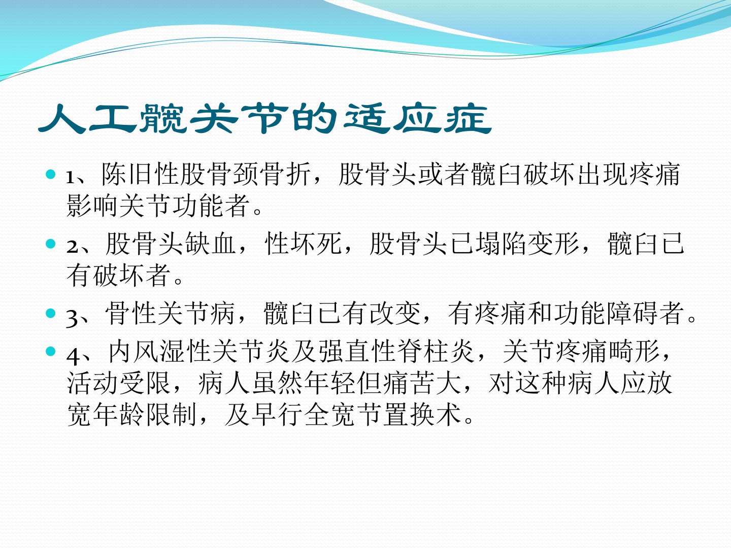衡阳县人民医院骨科范利红介绍了人工髋关节置换术的定义、适应症、优缺点及护理要点。适应症包括陈旧性股骨颈骨折、股骨头缺血性坏死等多种病症。该手术优点在于术后患者可早期下床缩短病程但手术不成功可能导致严重后遗症。护理方面包括术前心理、饮食护理及指导如介绍成功病例、指导合理膳食、练习床上运动等;术后需密切观察生命体征、患肢位置及伤口情况做好管道护理、翻身护理并及时补液抗炎抗血栓治疗。常见并发症预防护理包括疼痛、脱位、下肢静脉血栓和感染的护理。康复治疗旨在功能训练、恢复正常关节活动范围、恢复肌力及重建髋关节稳定性。术后分阶段进行康复训练出院后需继续功能锻炼注意饮食和休息避免过量活动并定期门诊复查。