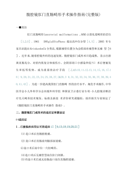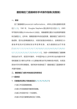腹腔镜肛门直肠畸形手术操作指南(完整版)一、前言肛门直肠畸形(anorectalmalformations,ARM)占消化道畸形的首位[1,2,3]。1961年,DouglasStephens提出高中位分型[4,5]。2005年专家共识提出Krinkenbeck分类法,根据瘘管位置分为会阴部有瘘型和无瘘型[6]。近年来,随着腔镜外科的迅速发展,腹腔镜肛门成形术日趋成熟,显示出游离直肠充分、对括约肌复合体损伤小、会阴部切口小感染率低和术后便秘发生率低等优势,成为重要的治疗手段[7,8,9,10,11,12,13,14,15,16,17,18,19,20,21,22,23,24,25,26,27,...