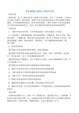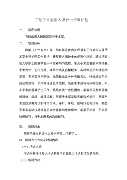 手术室护士培训计划摘要手术室护士培训计划分阶段实施:1新护士培训:第一阶段(112个月)逐步熟悉手术室环境、工作特点、无菌技术操作及各室工作通过模拟教学与实操结合的方式掌握基础技能。后续阶段(912个月)分科深化包括普外、泌尿科、妇产科、运医及骨科等典型手术配合每阶段结束均进行笔试和操作考核。2低年资护士(23年)培训:侧重腰麻和硬膜外麻醉配合、急诊手术配合及各专科手术配合能力强调无菌技术操作规程参与值班考核无菌技术操作成绩。3高年资护士(45年)培训:聚焦较复杂大手术配合、各种麻醉配合、急救与复苏技能及新仪器使用每半年考核一次。4岗前培训:通过分层管理制定系统培训计划包括基础理论、操作技能及专科理论为期3个月利用周末时间集中授课由资深护士担任教员形式多样化考核严格并设反馈与评估机制综合评定新护士表现实施奖惩制度。