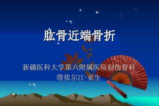 ProximalHumerusFractures/DislocationsHistory/DemographicsBimodal:young-highenergy,elderly-lowenergy(osteoporosis)45%ofallhumerusfx.elderlyfemales4:1overmales77%ofallprox.hum.fracturesfemaleConsequences/AssociatedInjuriesDisabilitiesoftenunderestimatedLossofmotionLossofreductionAVNheterotopicboneAsso...