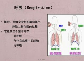 呼吸功能训练及排痰技术第1页,共52页。(一)呼吸的生理基础呼吸由肺通气和肺换气组成,称为外呼吸;组织换气又称为内呼吸。整个呼吸过程分四个相互衔接和同步的阶段第2页,共52页。肺通气功能的评价指标肺通气量:每分通气量=潮气量x呼吸频率肺泡通气量:每分钟肺泡吸入的真正参与气体交换的新鲜空气量肺泡通气量=(潮气量-无效腔)×呼吸频率(次/min)意义:能更好反应肺的实际有效通气功能第3页,共52页。1.呼吸训练的定义呼吸训练是通过各种呼吸运动和治疗技术来重建正常的呼吸模式,增强呼吸肌功能,改善肺通气,减轻呼吸困难,提高肺功能的训练方式。第4页,共52页。2.呼吸训练作用增加呼吸肌的随意运动,提高呼...