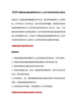 《中国缺血性脑血管病非急诊介入治疗术前评估专家共识》(2020)要点