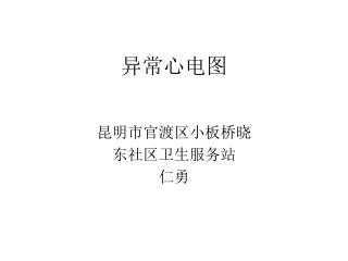 医院内一科李雪山医生介绍了异常心电图的识别及处理重点讲解了心律失常相关知识。心律失常指心脏冲动频率、节律、起源、传导速度与激动次序异常分类包括冲动形成异常(窦房结心律失常、异位心律)和冲动传导异常(生理性干扰及房室分离、病理性传导阻滞等)。其发生机制涉及冲动形成异常(自律性增高、触发活动)和冲动传导异常(折返)。诊断依赖病史、体检及ECG等检查。具体病症中期前收缩(早搏)包括房性、交界性、室性各有ECG特征及临床表现;心动过速分房性、阵发性室上性、室性病因多样ECG表现及治疗原则各异;扑动和颤动方面心房扑动和心房颤动病因、临床表现、心电图特征不同房颤病人体循环栓塞危险较高;心室扑动与颤动是致命性心律失常ECG呈特定波形须立即抢救。