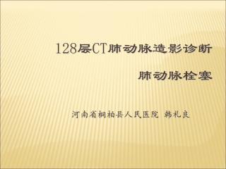 128层CT肺动脉造影诊断肺动脉栓塞河南省桐柏县人民医院韩礼良概述急性PE是临床常见的急性血管疾病,发病率有逐年上升的趋势且死亡率高。急性PE的症状、体征及实验室检查没有特异性,漏诊、误诊导致延误治疗时机常常造成严重的不良后果。近年来,随着多层螺旋CT的普及及其在临床上的广泛应用,CT肺动脉血管成像(CTPulmonaryAngiography,CTPA)已逐渐替代肺动脉造影,成为急性PE诊断及治疗监测方面的首选检查方法。概述CTPA可直接显示段乃至亚段肺动脉内的栓子,被认为是诊断急性PE的临床金标准。CTA的敏感性为83%,特异性为96%,阴性预测值为86%;对叶及以上动脉的阴线预测值为97...