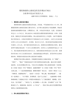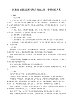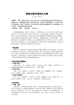 肺胀中医护理优化方案兰方美杨丹丹【摘要】目的通过对2012年6月-2014年5月本科室肺胀患者中医护理方案进行了回顾性总结,发现肺胀患者进行中医护理干预后,急性发作次数明显减少,也缩短了患者年均住院时间,降低了治疗费用,认为应用护理方案可有效缓解病情,防止病情加重,减少并发症,提高肺胀患者的生活质量。【关键词】肺胀;中医护理;优化方案慢性阻塞性肺疾病(COPD)是常见的一种呼吸道疾病,是以气道不完全可逆性气流受限为特征,且呈进行性发展,是老年人的常见病,反复住院的特点严重影响了患者的生活质量,目前已升为第四位老年人的主要死亡原因,肺胀即慢性阻塞性肺疾病稳定期【1】。对老年COPD稳定期患者进行...