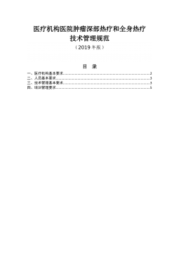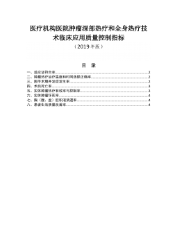 医疗机构医院肿瘤深部热疗和全身热疗技术临床应用质量控制指标(2019版)