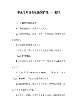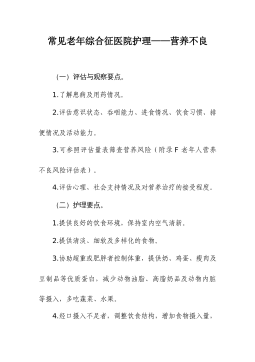 常见老年综合征医院护理——营养不良(2020年版)