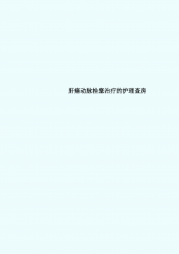 肝癌动脉栓塞治疗的护理查房————————————————————————————————作者:————————————————————————————————日期:ﻩ普外一区护理查房记录时间:2016-03-23地点:普通外科一区主持者:***护理组长参加人员:谢**、洪**、陈**、李**、戴**、王**主题:原发性肝癌动脉栓塞术后护理***护理组长:原发性肝癌是指发生于肝细胞和肝内胆管上皮细胞的癌,在我国位居恶性肿瘤发病率第二位,外科手术是治疗肝癌的首选方法。近年来,随着影像医学的迅速发展,导管技术和导引穿刺技术的进步,肝动脉栓塞术(tae术)已开辟了治疗肝癌的一条新途径。tae术能延长...