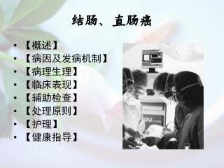一、结、直肠癌概述结直肠癌是发生在大肠的恶性肿瘤,在世界范围内属于第三大恶性肿瘤。我国大肠癌的发病率为15.7/10万,北京为60.45/10万,有明显逐渐增加的趋势,全国每年新发大肠癌13—16万人。07年北京最新数据:总死亡率恶性肿瘤排名第一,大肠癌位居癌症第三位(人口1202万/癌症死亡66421人)好发于40—60岁,在我国大肠癌发病中,以直肠癌占第一位,结肠癌好发于乙状结肠与其它肿瘤相比,预后好,是早期发现可以治愈的肿瘤。结肠的生理功能◆吸收水份及部分电解质和葡萄糖(吸收部位:结肠上段)为食物残渣提供暂时储存和转运场所结肠粘膜分泌碱性粘液以保护粘膜和润滑粪便参与维生素K、维生素B复合...
