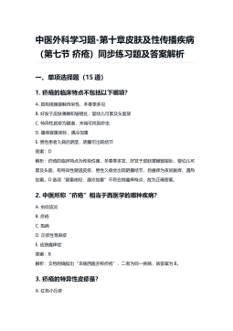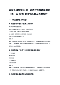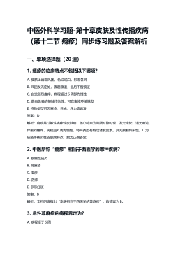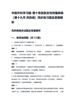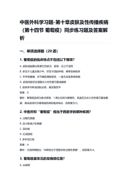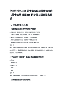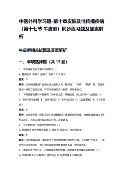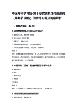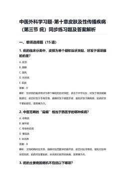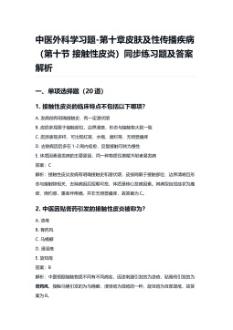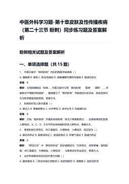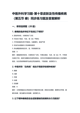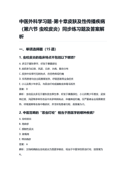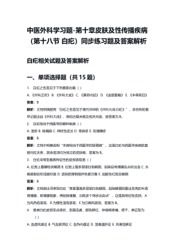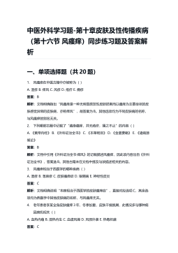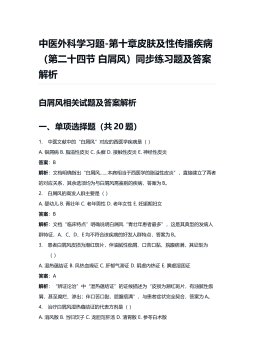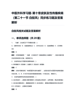 中医外科学习题-第十章皮肤及性传播疾病(第二十四节白屑风)同步练习题及答案解析白屑风相关试题及答案解析一、单项选择题(共20题)1.中医文献中的“白屑风”对应的西医学疾病是()A.银屑病B.脂溢性皮炎C.头癣D.接触性皮炎E.神经性皮炎答案:B解析:文档明确指出“白屑风……本病相当于西医学的脂溢性皮炎”,直接建立了两者的对应关系,其余选项均为与白屑风需鉴别的疾病,答案为B。2.白屑风的高发人群主要是()A.婴幼儿B.青壮年C.老年男性D.老年女性E.妊娠期妇女答案:B解析:文档“临床特点”明确说明白屑风“青壮年患者最多”,这是其典型的发病人群特征,A、C、D、E均不符合该疾病的好发人群特点,答...