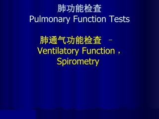 www.drsarma.in肺功能检查PulmonaryFunctionTests肺通气功能检查–VentilatoryFunction,Spirometrywww.drsarma.in肺功能检查通气功能检查换气功能检查血流灌注检查通气/血流匹配检查www.drsarma.in通气功能检查Airout–气道通畅性,支气管平滑肌张力,分泌物,等Airin–肺容积,肺顺应性‘AirOut’问题–阻塞性通气功能障碍‘AirIn’问题–限制性通气功能障碍BothAirOutandIn–混合性通气功能障碍www.drsarma.in峰流速仪www.drsarma.in肺功能工作站www...
