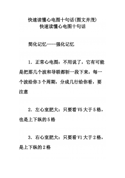 心电图检查及操作心电图心电图指的是心脏在每个心动周期中,由起搏点、心房、心室相继兴奋,伴随着心电图生物电的变化,通过心电描记器从体表引出多种形式的电位变化的图形(简称ECG)。心电图是心脏兴奋的发生、传播及恢复过程的客观指标。总结:心电图是心肌产生电位变化的体表记录。心电图机原理心电生理活动在人体表面产生微弱的低频变化的电位,变化的电位同心脏活动有着密切的联系。我们不能对这种变化的电位进行直接的分析,而是通过心电图机以不同的导联拾取这种变化的电位差即心电信号,经过放大并在时间轴上展开,形成心电图,对心电图波形进行分析,了解心脏的活动情况,为临床上对心脏疾病的诊断提供重要的依据。一、常规心电图操...