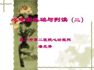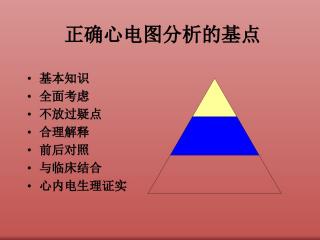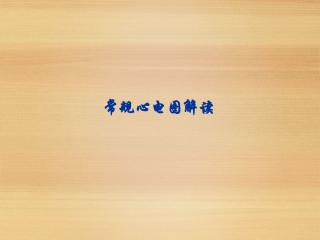 心电图基本知识谭琳什么是心电图在心动周期中,心肌每次收缩之前,必先产生电激动,电流传布全身,产生不同的电位,而电流强弱和方向不断发生变化,身体表面各处电位也不断变动。这样通过心电图机把这种变化着的电位连续描记成的曲线就是心电图。标准十二导联系统标准12导联双极肢体导联IIIIII单极肢体导联aVRaVLaVF单极胸前导联V1V2V3V4V5V6心电图导联的电极位置和连接方式心电图导联的电极位置和连接方式心电图组成心电图组成:包括P波、QRS波群、T波,有时还可看到U波。根据这些波还可分为几个段:P-R间期,Q-T间期,S-T段。心电图各波段意义P波:最早出现的幅度最小的波,反映心房除极过程...