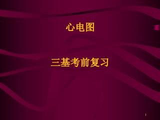 心电图三基考前复习心电图波段的统一命名临床常用——3波:P波,QRS波,T波;2段:PR段,ST段;2间期:PR间期,QT间期心电图导联体系(leadsystem)心电图导联——记录人体心电图的电路连接方法。常规12导联体系——Einthoven创设,国际通用。包括:6个肢体导联I,II,III,aVR,aVL,aVF。6个胸导联V1,V2,V3,V4,V5,V6常规12导联体系1、肢体导联(limbleads):电极放置:右臂(R),左臂(L),左腿(F)。双极肢体导联——I,II,III(又称标准导联)意义:反映所测的两肢体间电位差的变化。加压单极肢体导联——aVR,aVL,aVF意义:主...