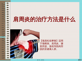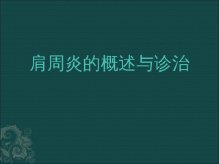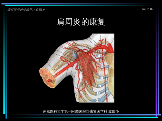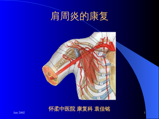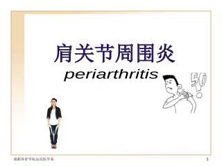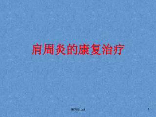 肩周炎的康复治疗1编辑版ppt定义肩关节周围炎简称肩周炎,又名粘连性关节囊炎、冻结肩、露肩风、五十肩等,是肩关节周围肌肉、肌腱、滑囊及关节囊的慢性损伤性炎症。2编辑版ppt肩关节复合体肩关节复合体是研究肩关节的生物力学及功能解剖的基础。包括三个解剖学关节三个功能性关节是人体活动范围最大的关节。3编辑版ppt4编辑版ppt三个解剖学关节盂肱关节肩锁关节胸锁关节5编辑版ppt三个功能关节肩胛胸壁关节喙锁关节肩峰下关节6编辑版ppt肩袖冈上肌,冈下肌,肩胛下肌,小圆肌7编辑版ppt8编辑版ppt肩袖的作用肩胛下肌收缩可以把肱骨头压向关节盂,使肱骨头内旋,并顶压肱骨头前方,使头...